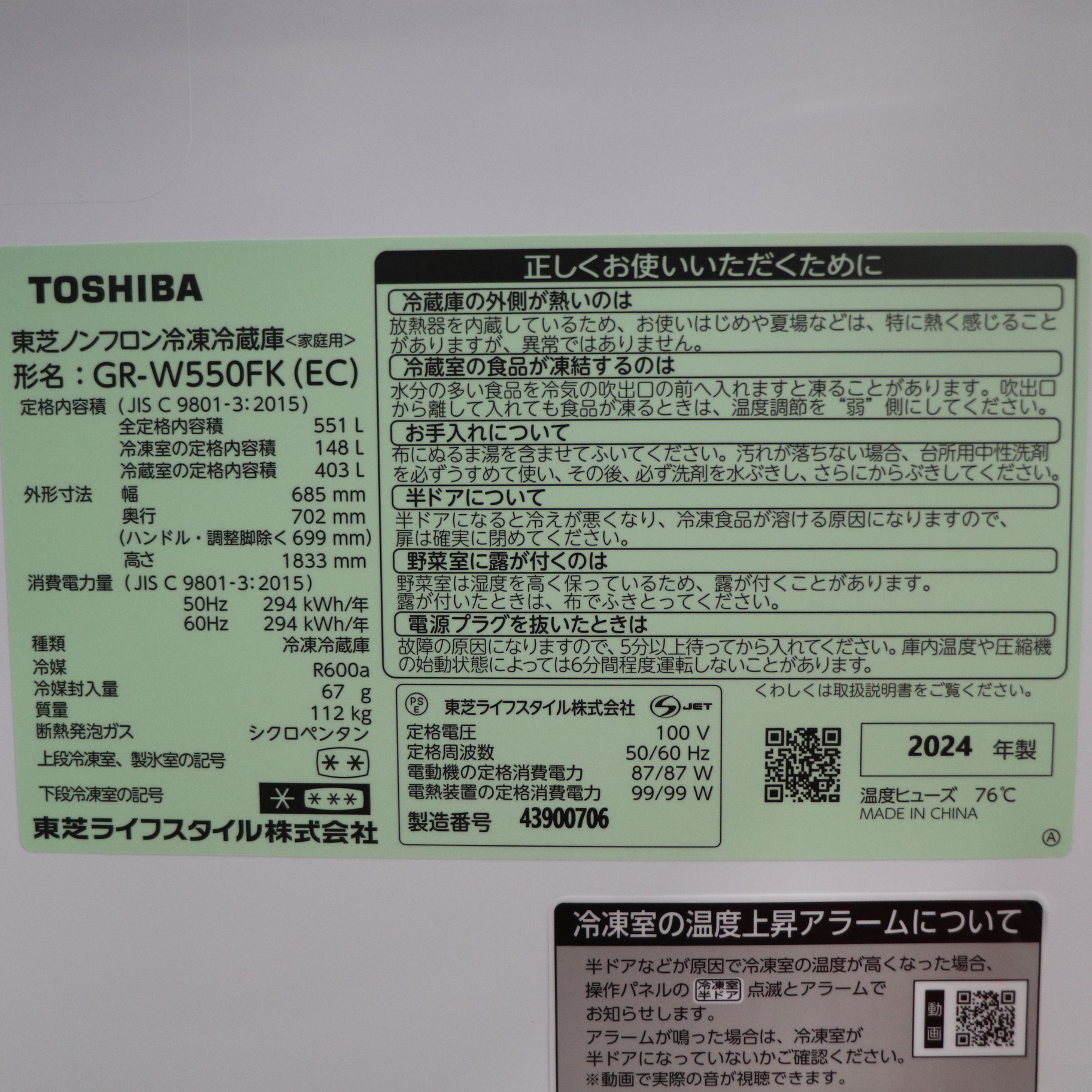 中古商品ランクについて 付属品・商品状態について 〔付属品〕説明書、調整脚×2、前面グリル、調整脚用工具、仕切れるチューブスタンド、卵スタンド、アルミトレイ(チルド)、おそうじ口のフタ、アルミトレイ(冷凍室)、野菜冷凍マット、給水タンク一式、アイスシャベル