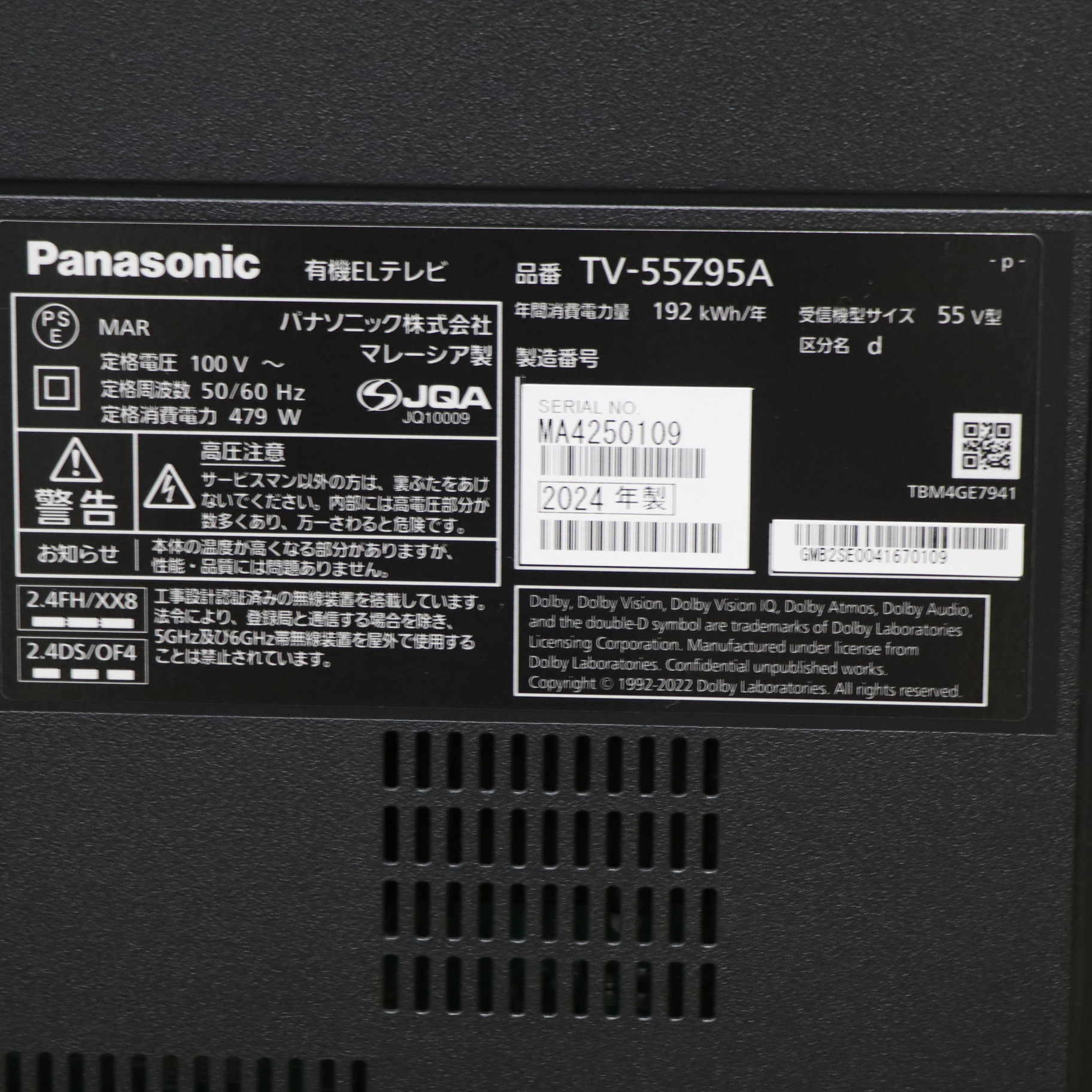 〔展示品〕 有機ELテレビ VIERA(ビエラ) TV-55Z95AJ [55V型 /Bluetooth対応 /4K対応 /BS・CS 4Kチューナー内蔵 /YouTube対応]