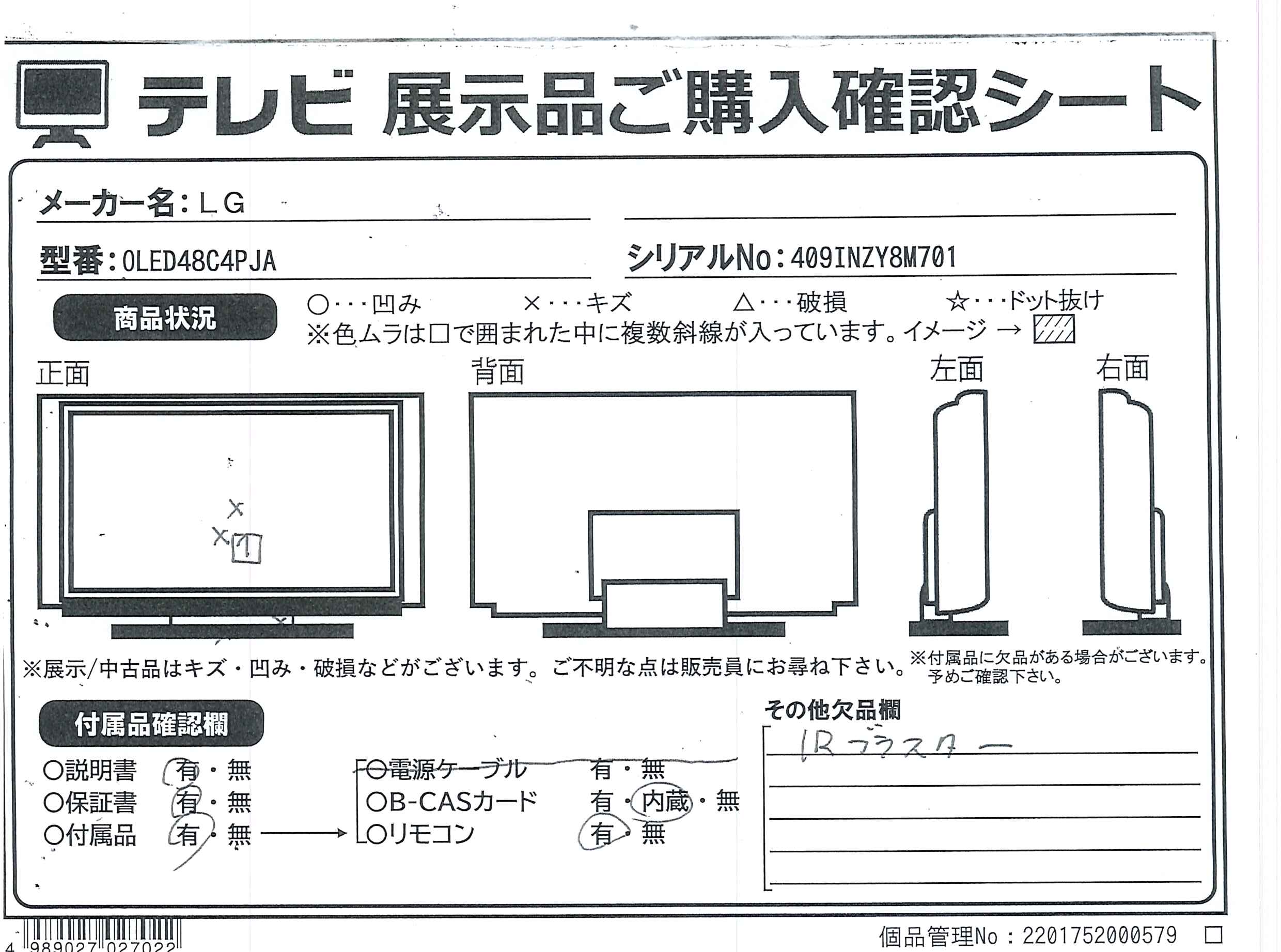 〔展示品〕 有機ELテレビ OLED48C4PJA [48V型 /Bluetooth対応 /4K対応 /BS・CS 4Kチューナー内蔵 /YouTube対応]