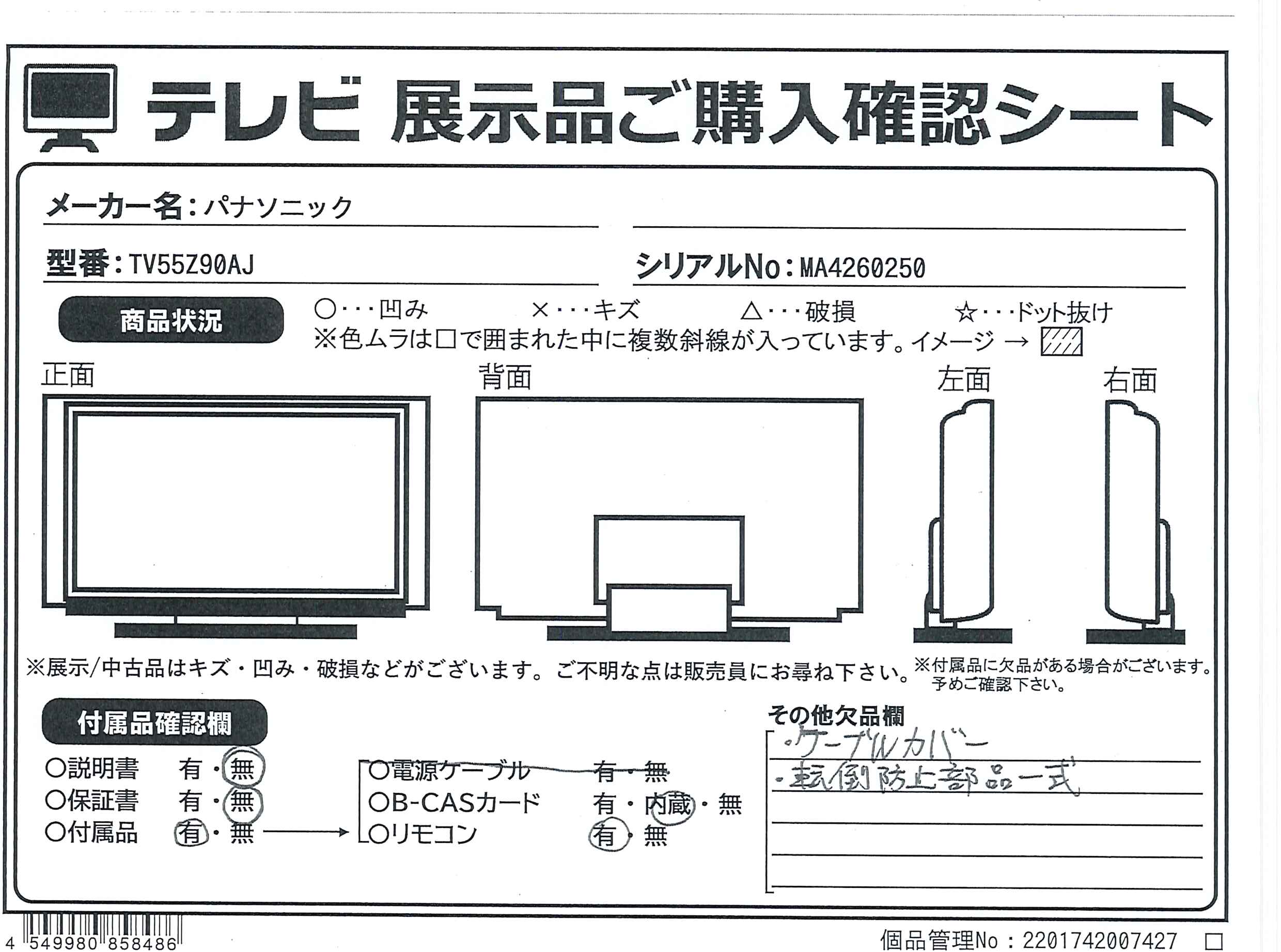 中古商品ランクについて 付属品・商品状態について 〔付属品〕リモコン、リモコン用乾電池×2、転倒防止スタンド、本体固定用ねじ(M4)×4
