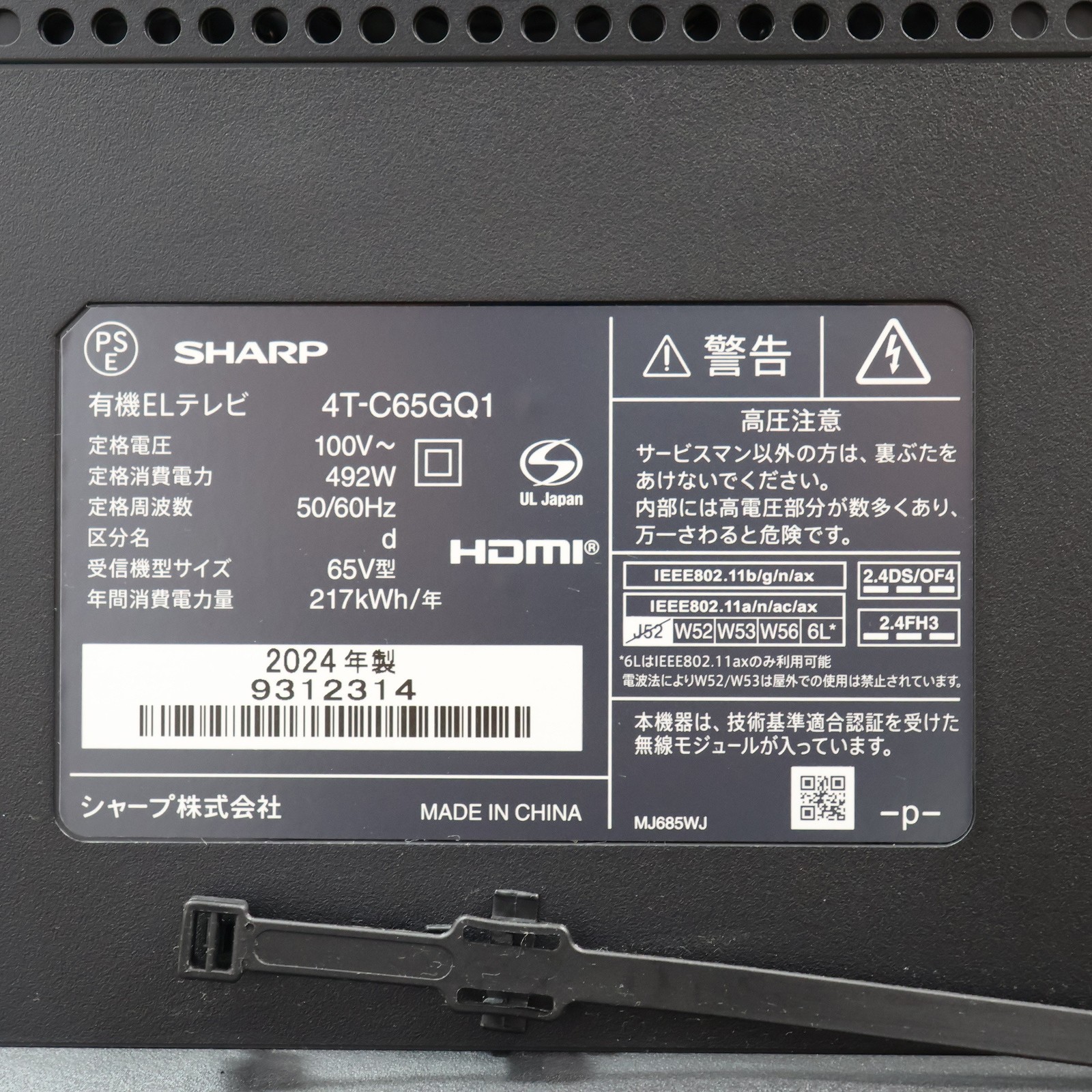 〔展示品〕 【EC限定セール品】 有機ELテレビ AQUOS ブラック 4T-C65GQ1 [65V型 /Bluetooth対応 /4K対応 /BS・CS 4Kチューナー内蔵 /YouTube対応]