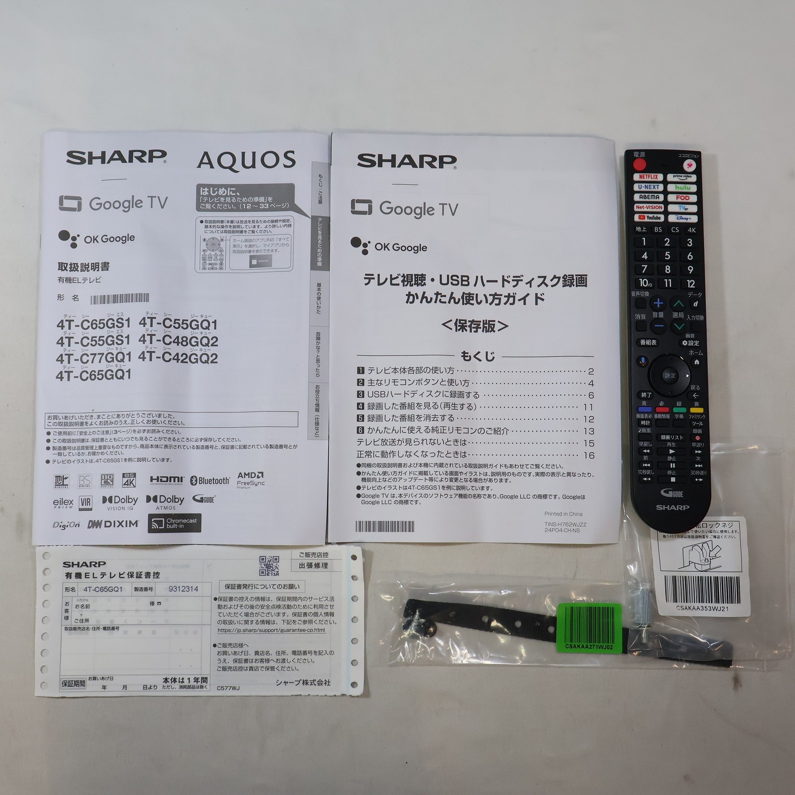 中古商品ランクについて 付属品・商品状態について 〔付属品〕説明書、かんたん使い方ガイド、リモコン、スタンド一式、スタンドカバー、転倒防止ベルト一式、スタンド回転ロックネジ