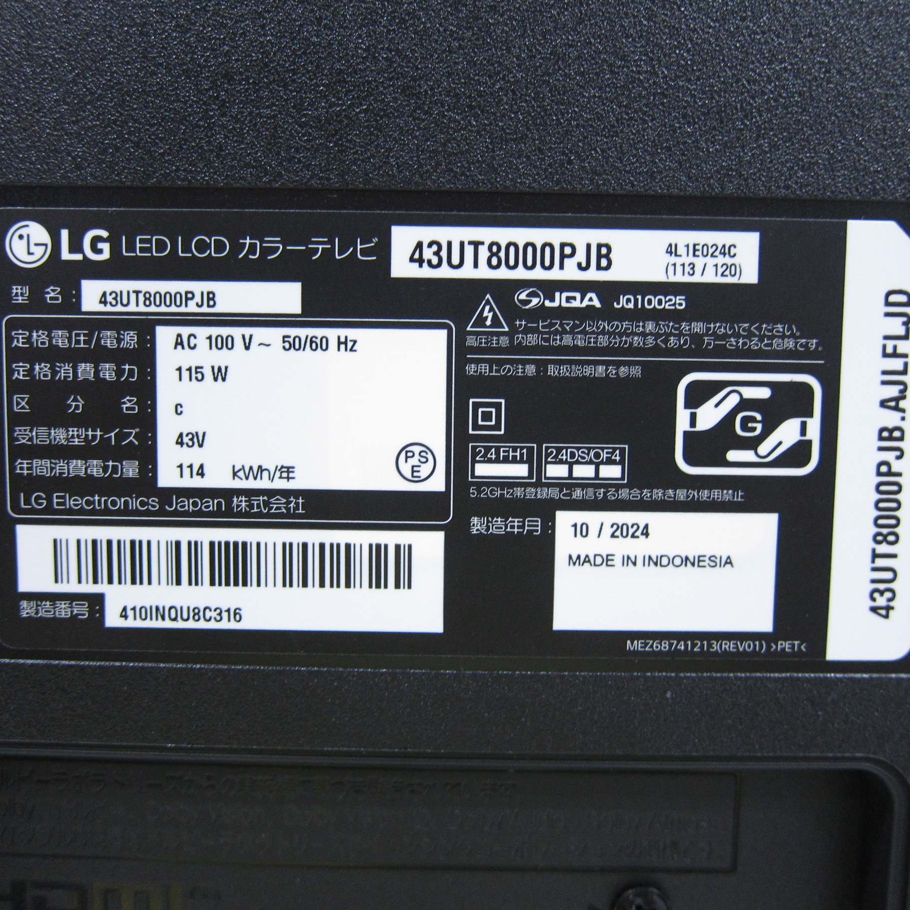 〔展示品〕 液晶テレビ 43UT8000PJB [43V型 /Bluetooth対応 /4K対応 /BS・CS 4Kチューナー内蔵 /YouTube対応]