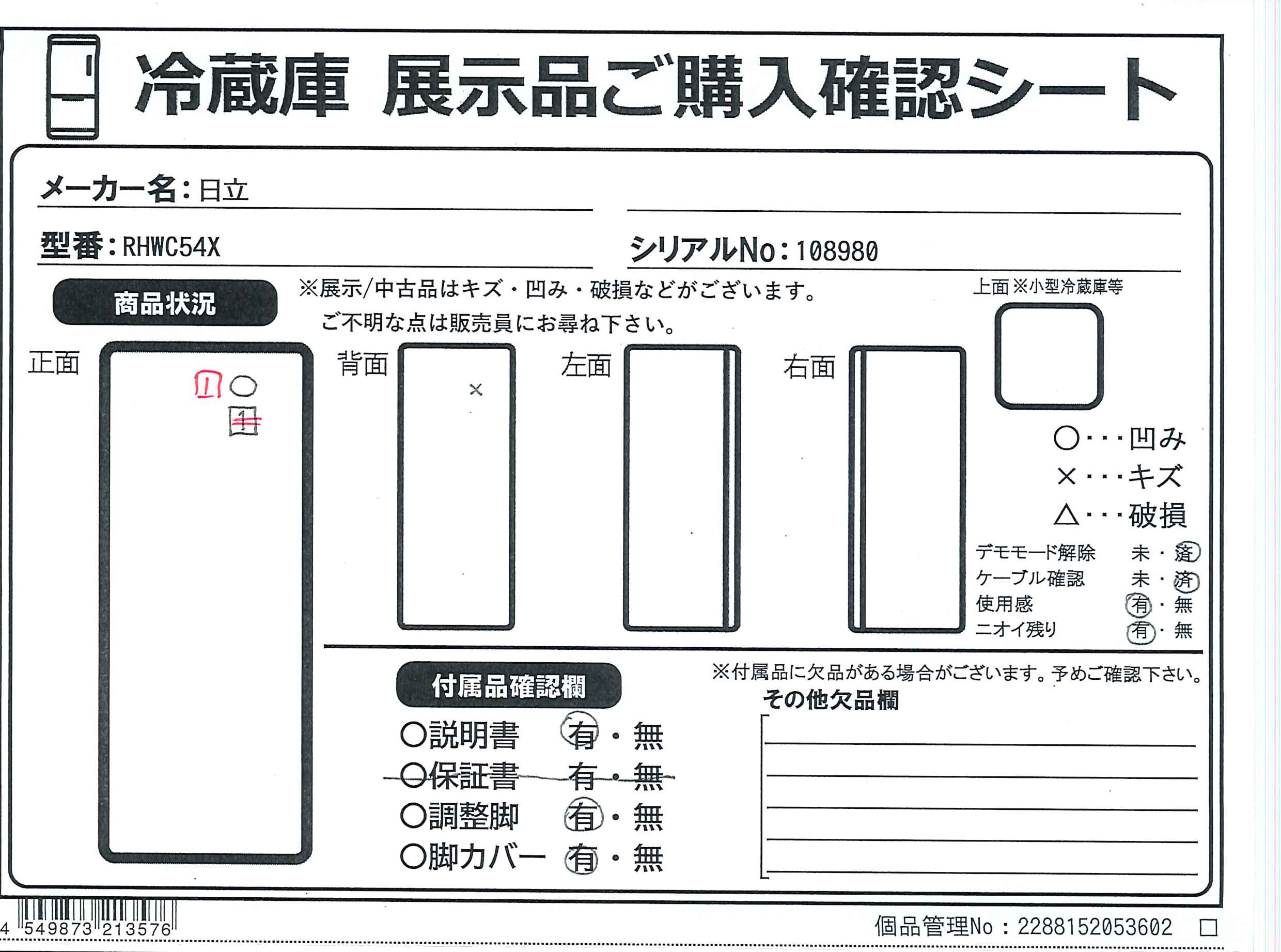 ▼同型番の新品商品はこちら![]() HITACHI(日立) 冷蔵庫 HWCタイプ ブラストモーブグレー R-HWC54X_H [幅65cm /540L /6ドア /観音開きタイプ /2025年]【基本設置料金セット】 ¥268,000(税込) 26,800ポイントサービス 在庫限り |