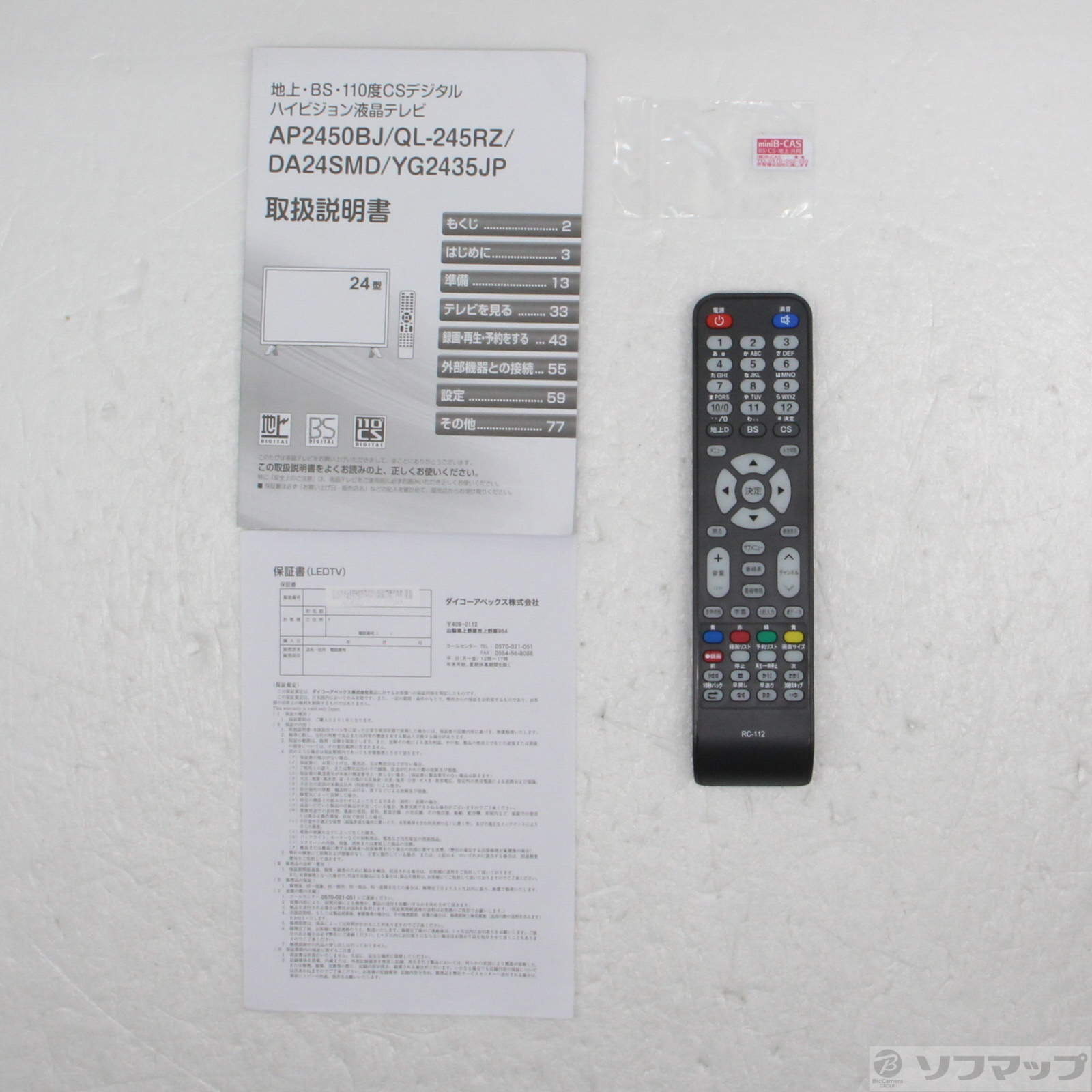 中古商品ランクについて 付属品・商品状態について 〔付属品〕取扱説明書、リモコン、miniB-CASカード、スタンド一式