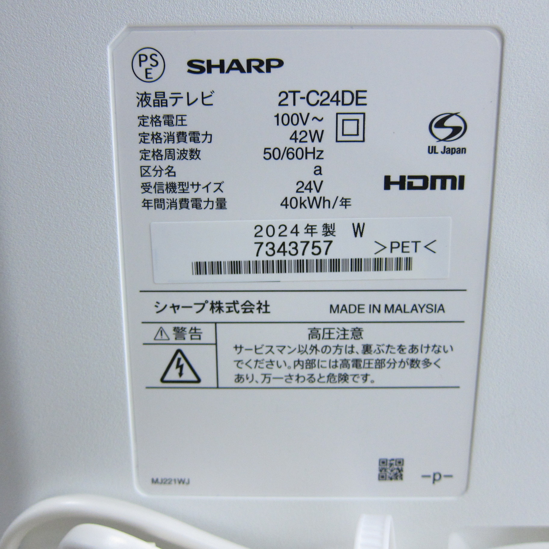 〔展示品〕 液晶テレビ AQUOS ホワイト系 2T-C24DEW [24V型 /ハイビジョン]