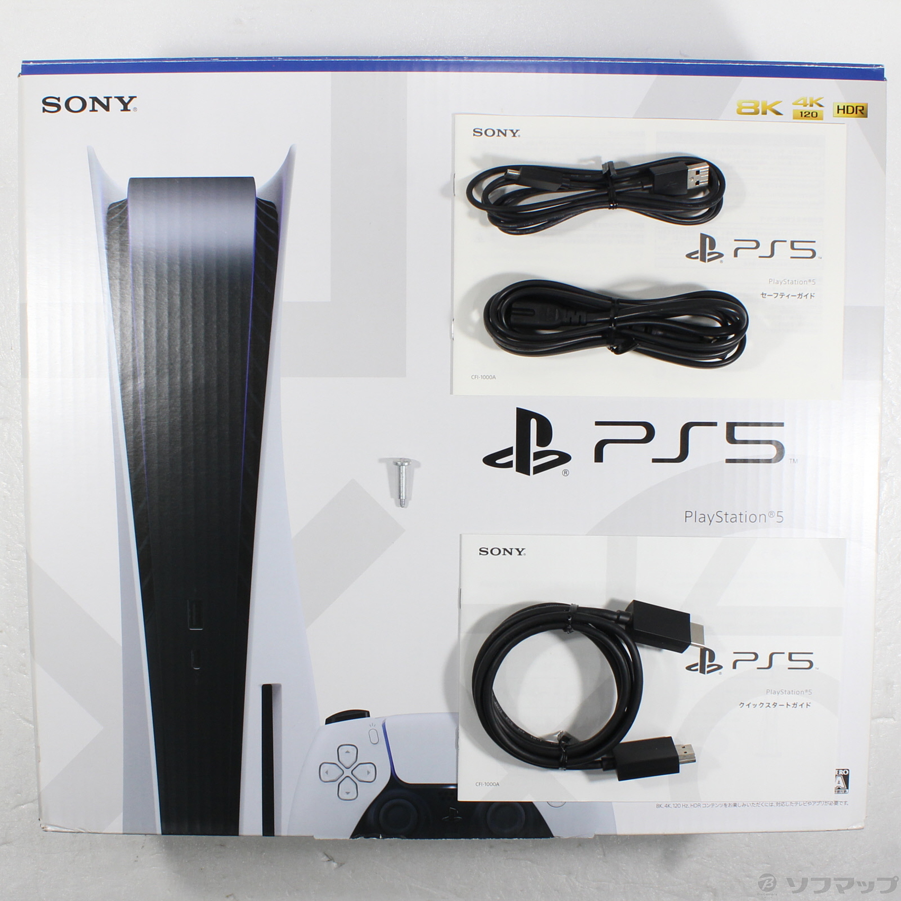 中古商品ランクについて 付属品・商品状態について 〔付属品〕外箱/内箱、クイックスタートガイド、セーフティガイド、DualSense ワイヤレスコントローラー、本体底面ネジ穴キャップ、ベース、ベース取付用ネジ、HDMIケーブル、USBケーブル、ACケーブル