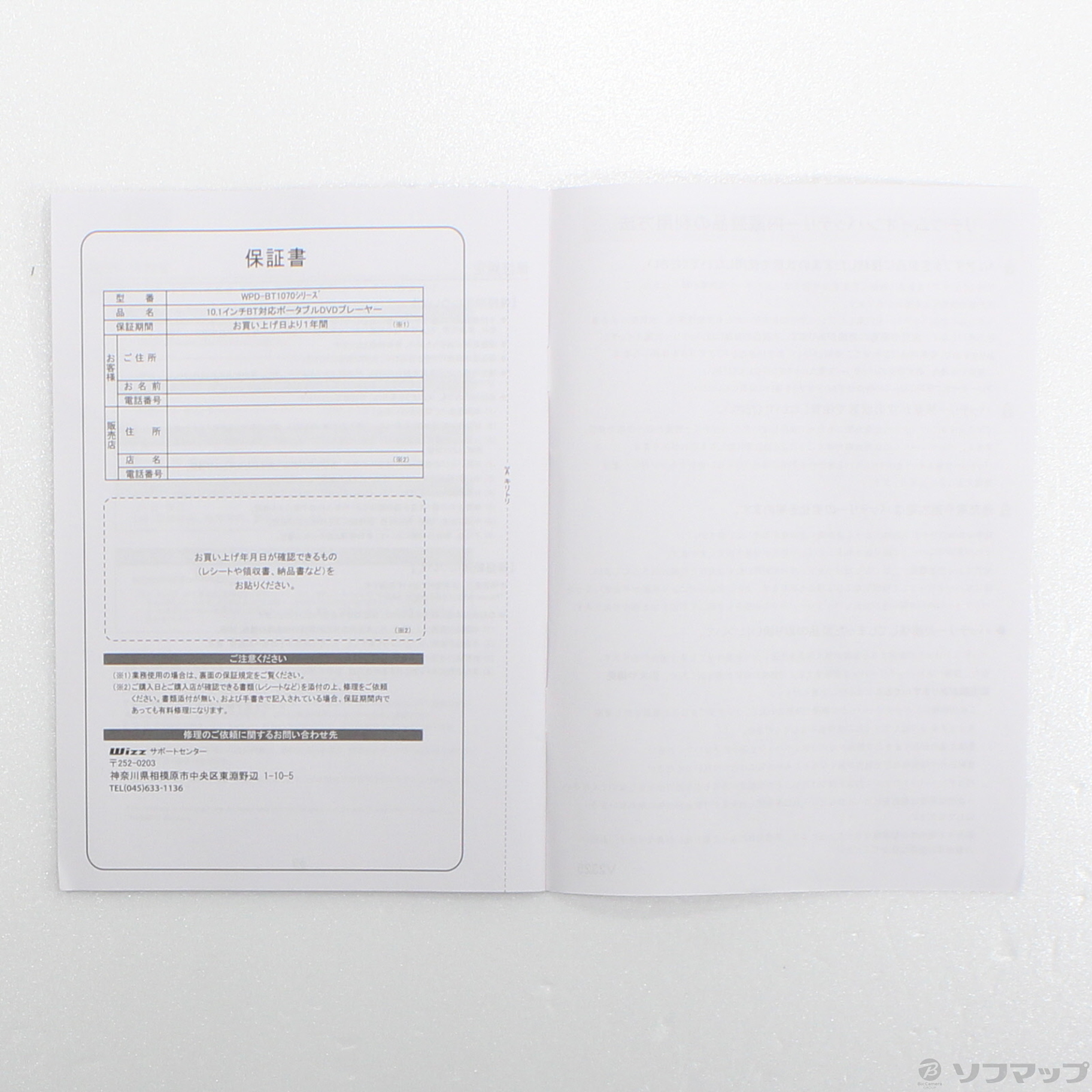 〔展示品〕 Bluetooth搭載 10.1インチ ポータブルDVDプレーヤー WPD-BT1070