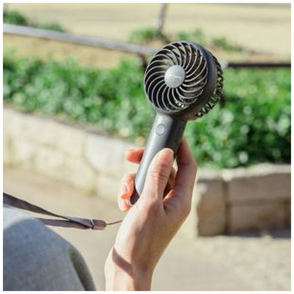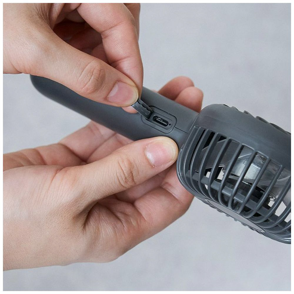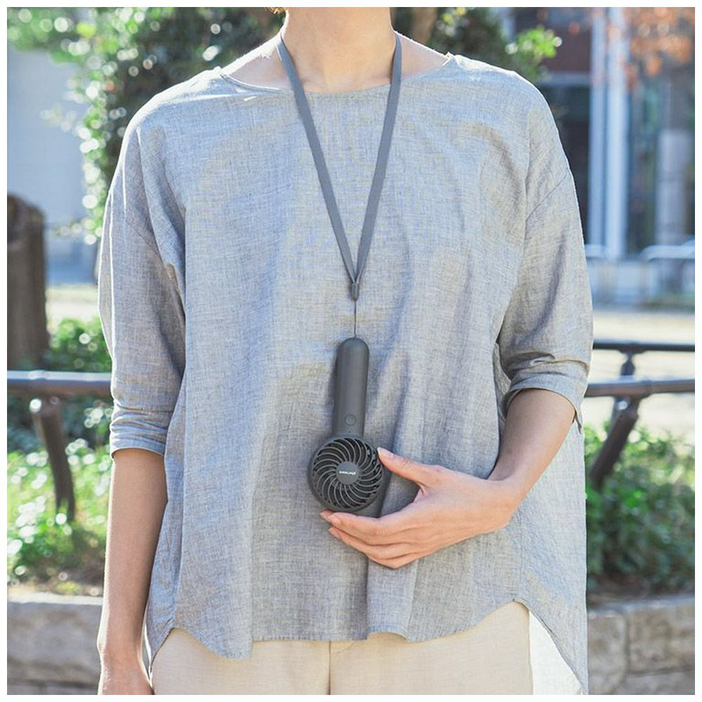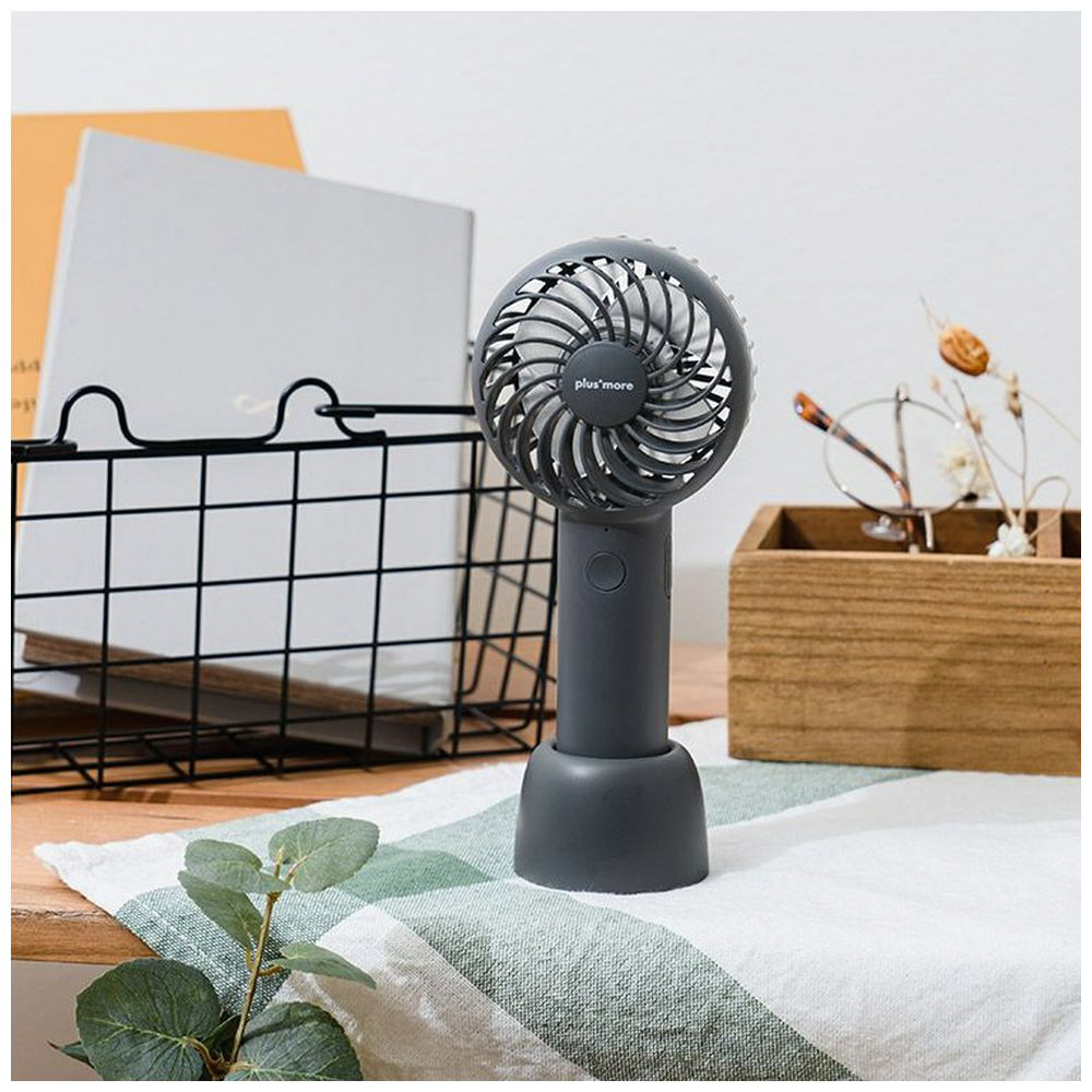 〔展示品〕 静音ミニハンディファン ネックストラップ&スタンド付 plusmore ダークグレー PBAF001-DG