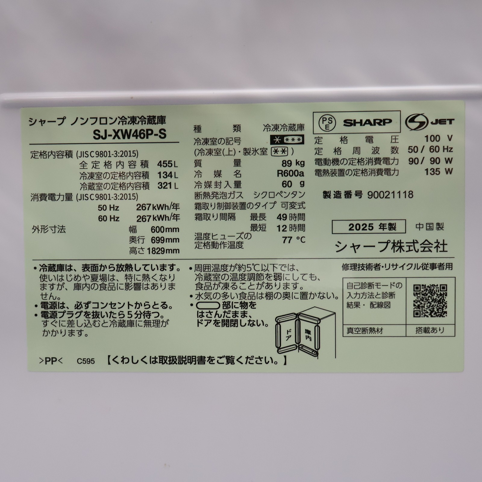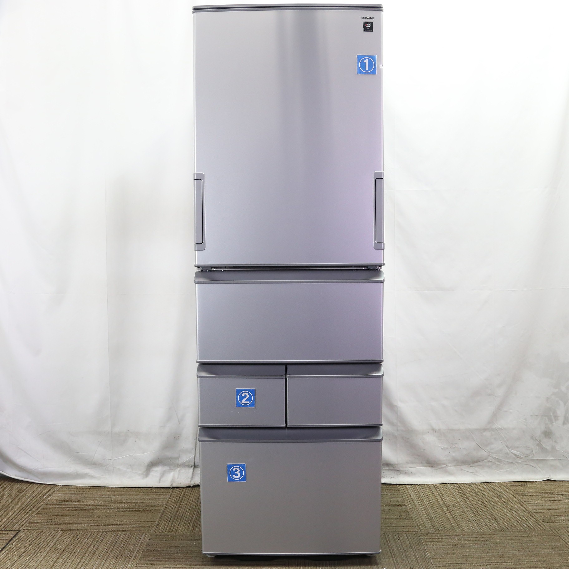 〔中古品〕 両開き455L冷蔵庫 カームマットシルバー SJ-XW46P-S [幅60cm /455L /5ドア /左右開きタイプ](中古保証1ヶ月)
