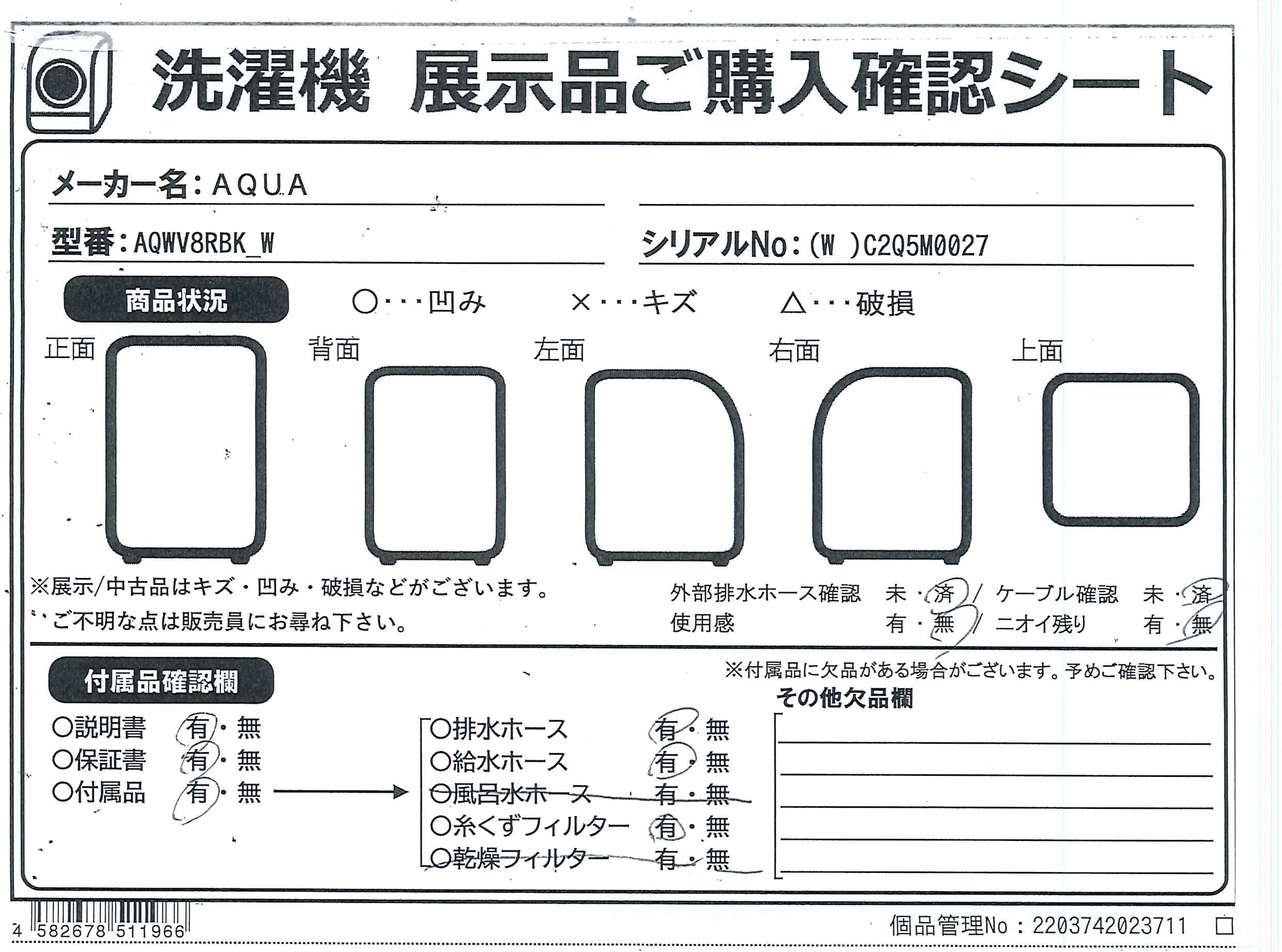 中古商品ランクについて 付属品・商品状態について 〔付属品〕説明書、風呂水吸水ホース、風呂水吸水ホース掛け、給水ホース、マジックつぎ手、底カバー、ネジ1本、据付説明書