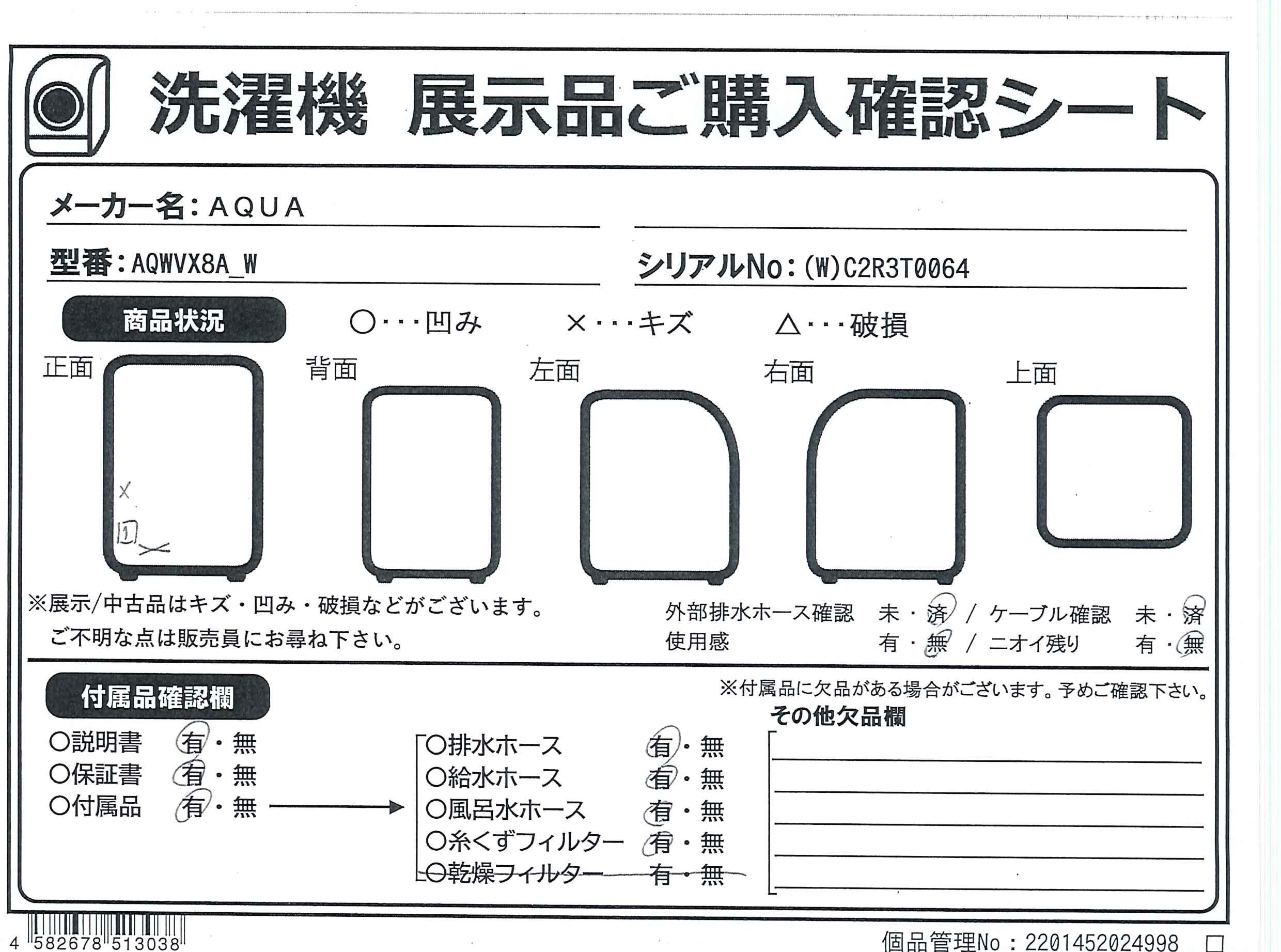![AQUA 全自動洗濯機 ホワイト AQW-VX8A(W) [洗濯8.0kg /簡易乾燥(送風機能) /上開き]](https://image.sofmap.com/images/product/large/4582678513038.jpg)