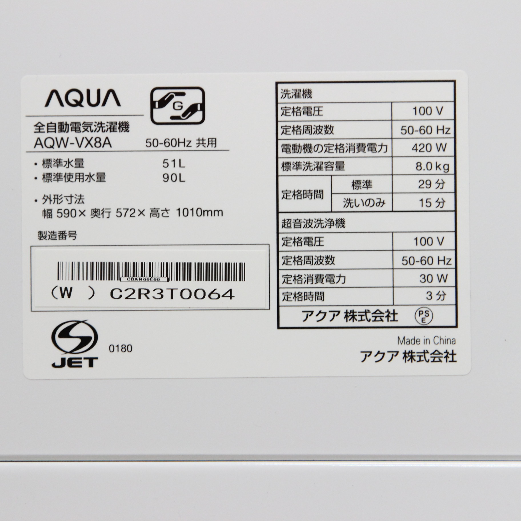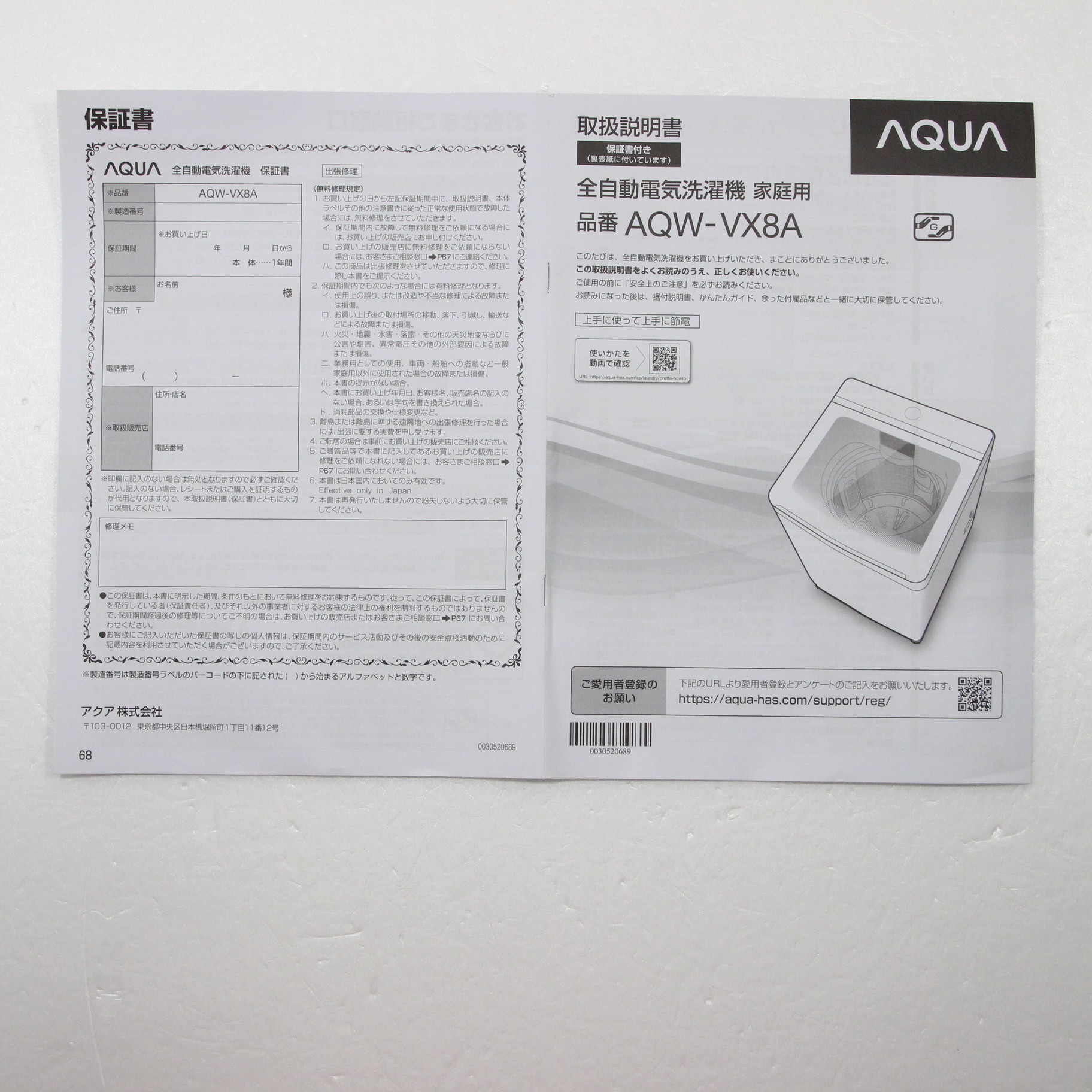 〔展示品〕 全自動洗濯機 ホワイト AQW-VX8A(W) [洗濯8.0kg /簡易乾燥(送風機能) /上開き]
