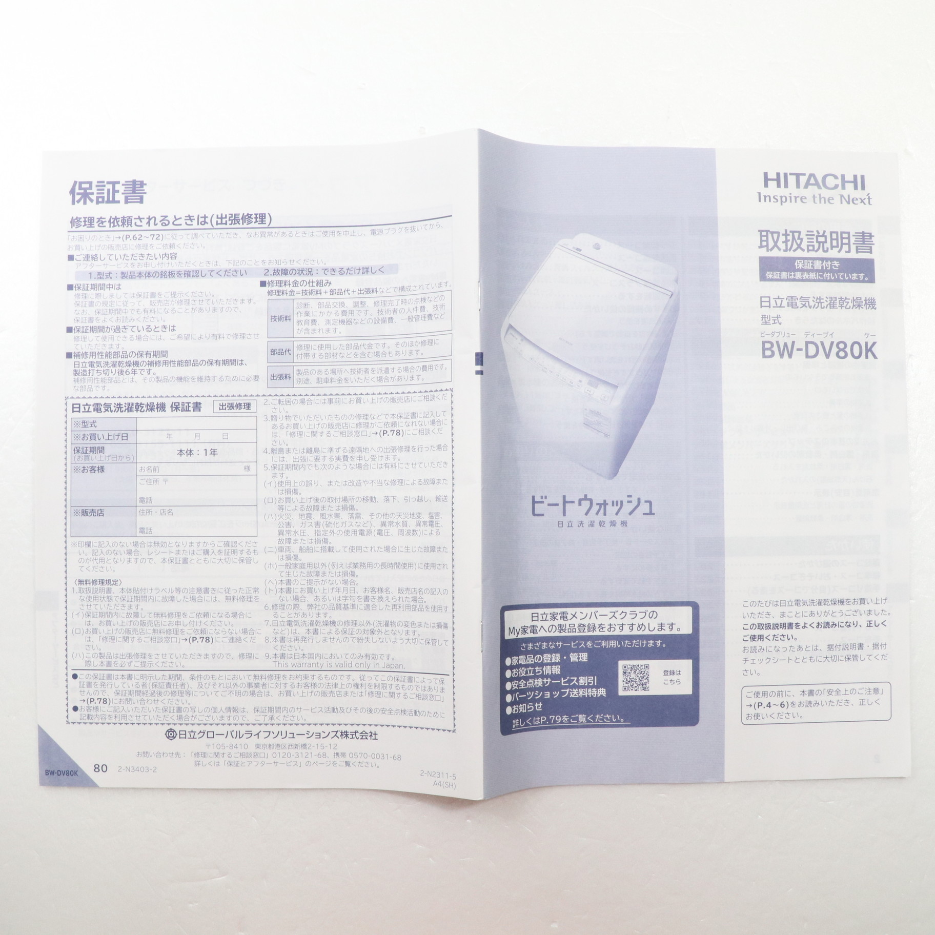 ▼同型番の新品商品はこちら![]() HITACHI(日立) タテ型洗濯乾燥機 ビートウォッシュ ホワイト BW-DV80K-W [洗濯8.0kg /乾燥4.5kg /ヒーター乾燥(水冷・除湿タイプ) /上開き] ¥129,800(税込) 0ポイントサービス 在庫限り |