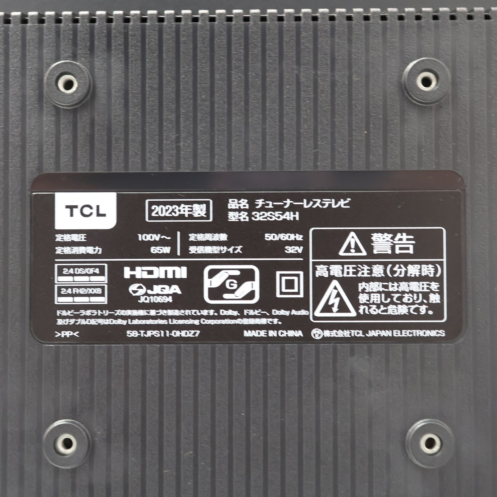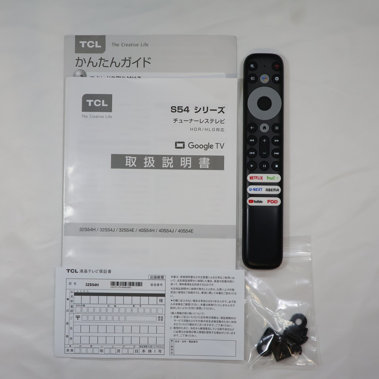 中古商品ランクについて 付属品・商品状態について 〔付属品〕取扱説明書、かんたんガイド、標準リモコン、スタンド×2、スタンド用ネジ×4、転倒落下防止用部品一式