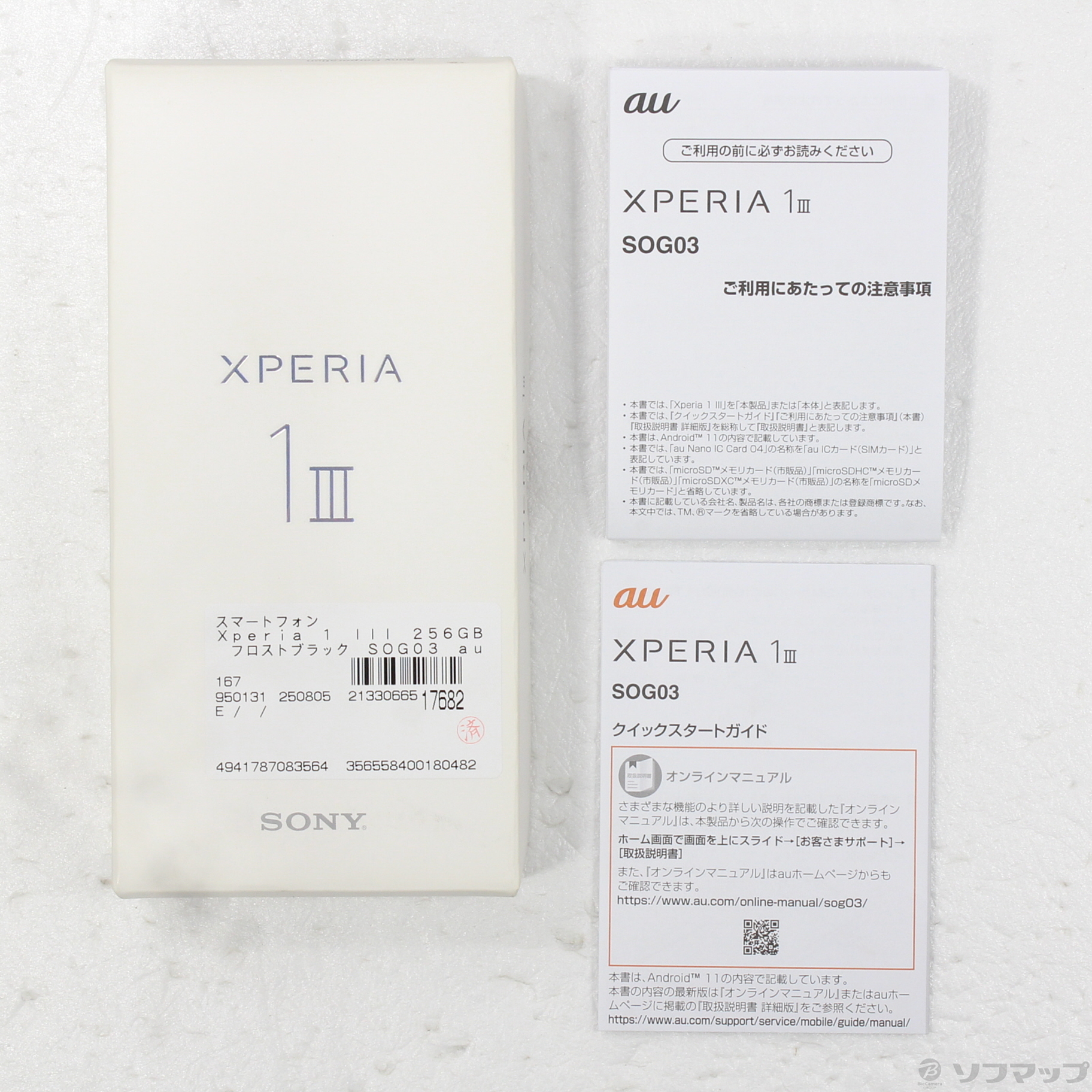 〔中古品(難あり)〕 Xperia 1 III 256GB フロストブラック SOG03 auロック解除SIMフリー [6.5インチ有機EL/Snapdragon 888 5G]