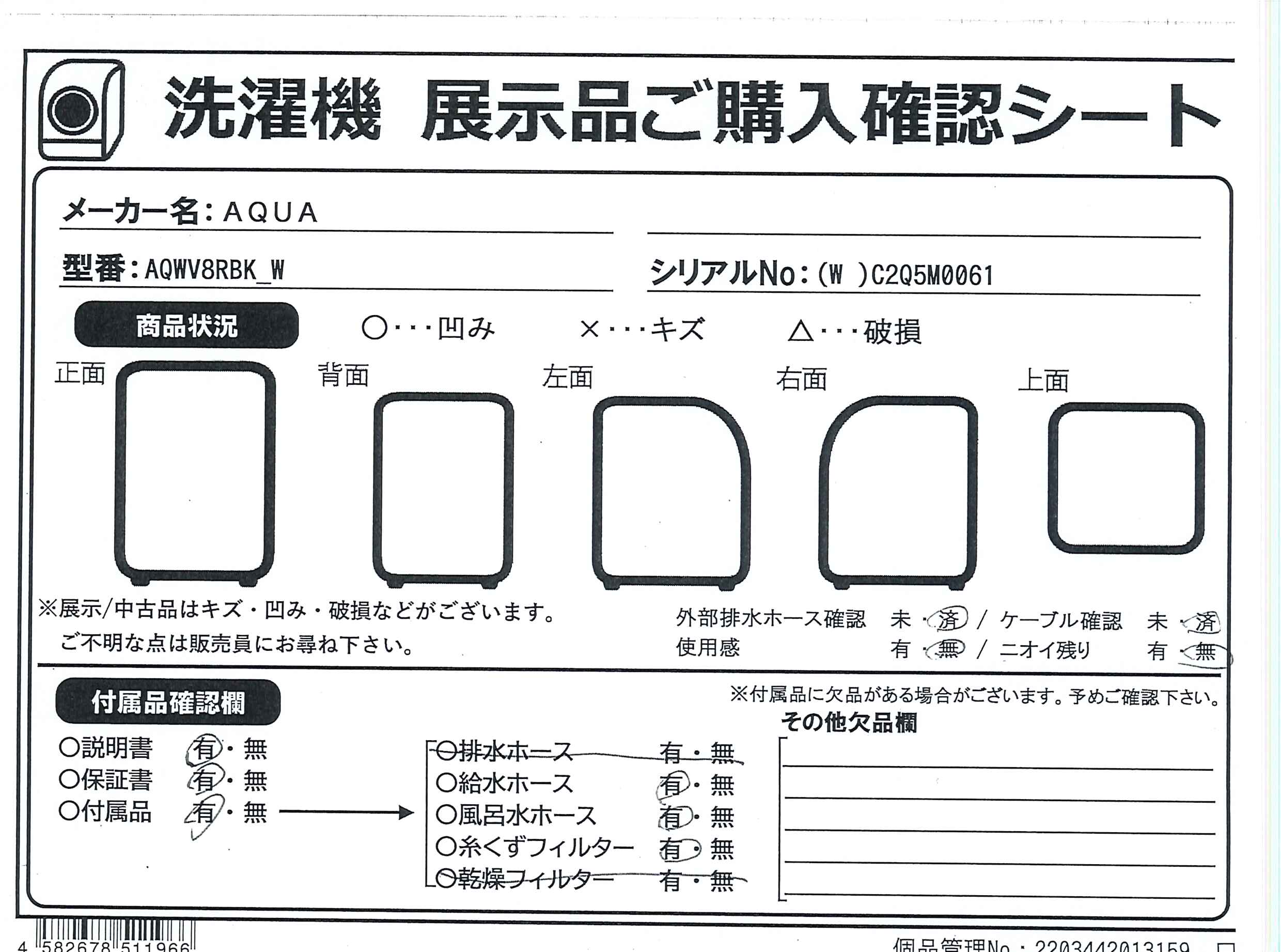 中古商品ランクについて 付属品・商品状態について 〔付属品〕説明書、風呂水吸水ホース、風呂水吸水ホース掛け、給水ホース、マジックつぎ手、底カバー、ネジ(底カバー用)、据付説明書