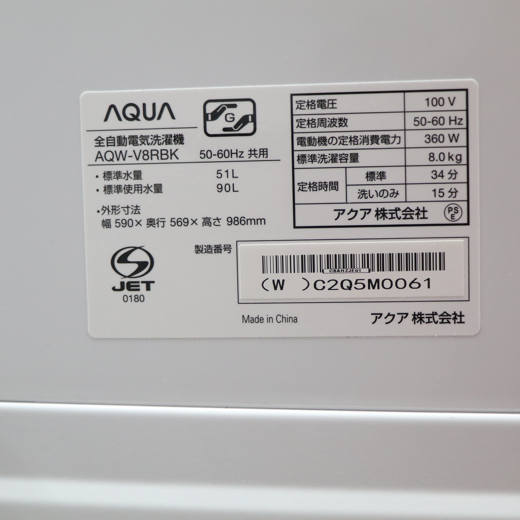 〔展示品〕 全自動洗濯機 AQW-V8RBK-W [洗濯8.0kg /簡易乾燥(送風機能) /上開き]