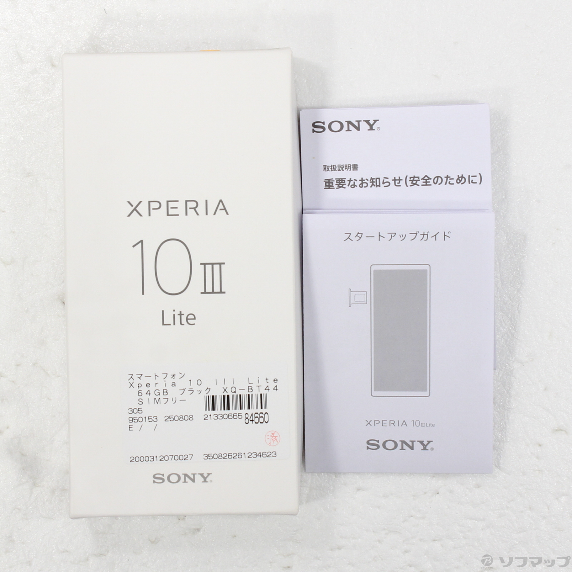 〔中古品(難あり)〕 Xperia 10 III Lite 64GB ブラック XQ-BT44 SIMフリー [6インチ有機EL/Snapdragon 690 5G]