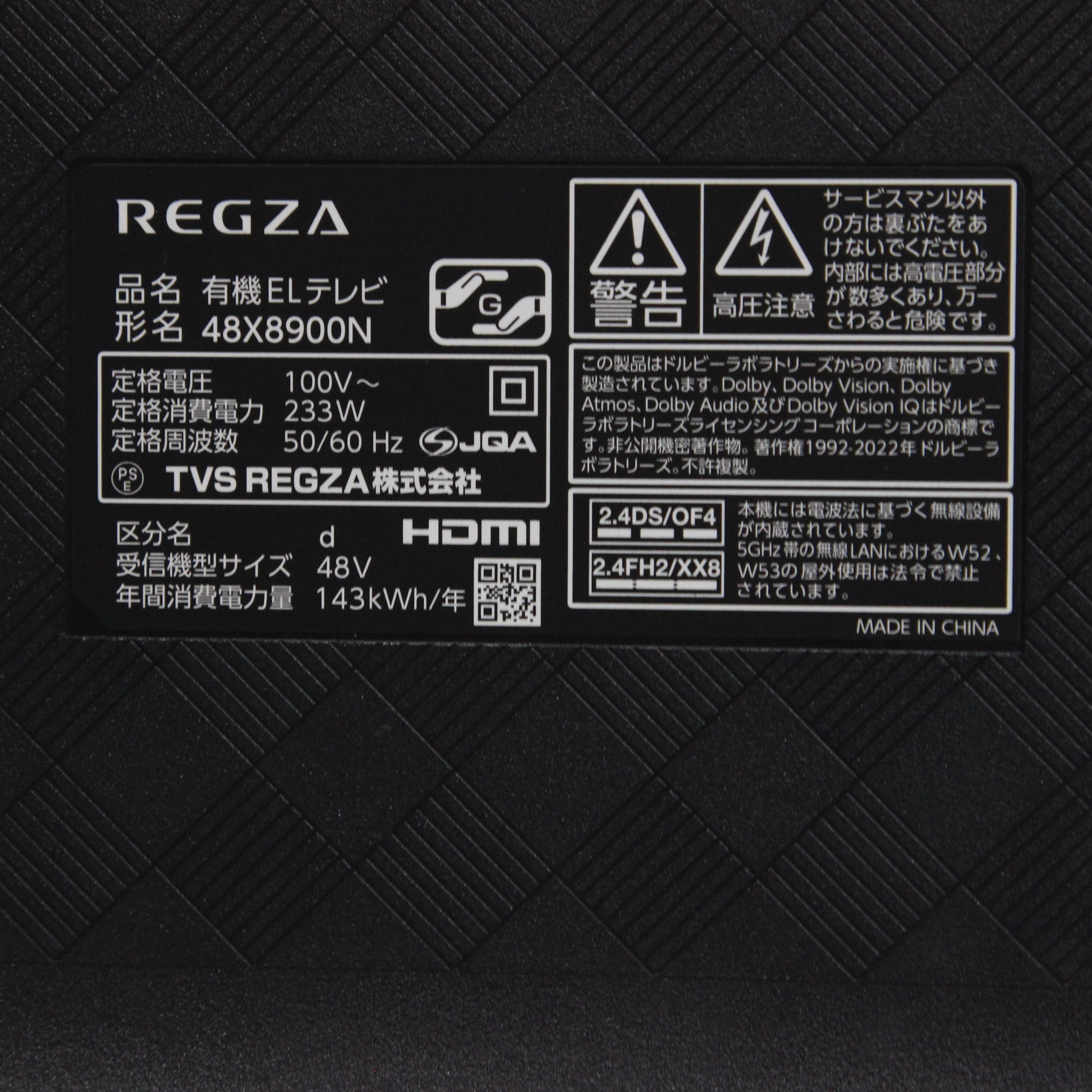〔展示品〕 有機ELテレビ REGZA(レグザ) 48X8900N [48V型 /Bluetooth対応 /4K対応 /BS・CS 4Kチューナー内蔵 /YouTube対応]