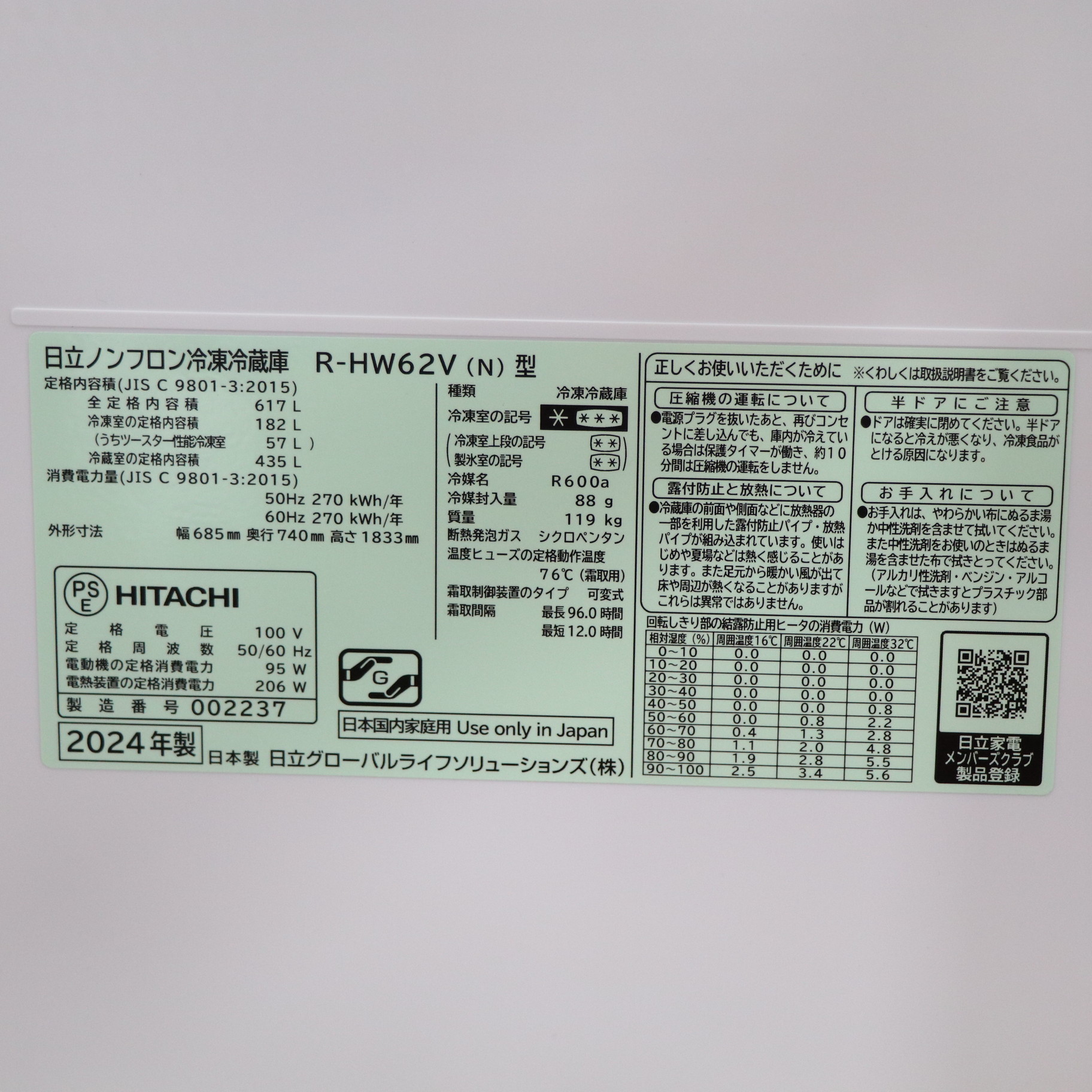 〔展示品〕 冷蔵庫 HWタイプ ライトゴールド R-HW62V-N [幅68.5cm /617L /6ドア /観音開きタイプ /2024年]