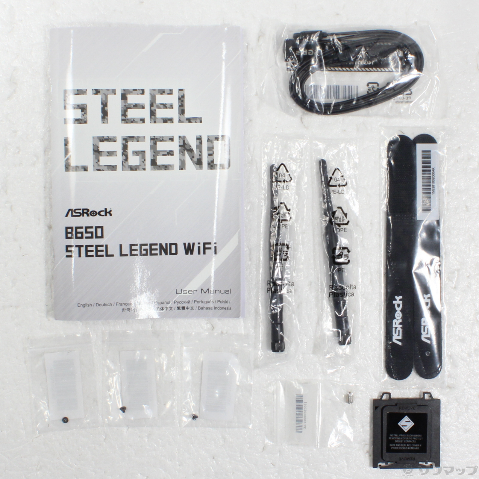 中古商品ランクについて 付属品・商品状態について 〔付属品〕ユーザーマニュアル、Wi-Fiアンテナ×2、CPUソケットカバー、M.2ソケット用ネジ×3、M.2ソケット用スタンドオフ、SATAケーブル×2