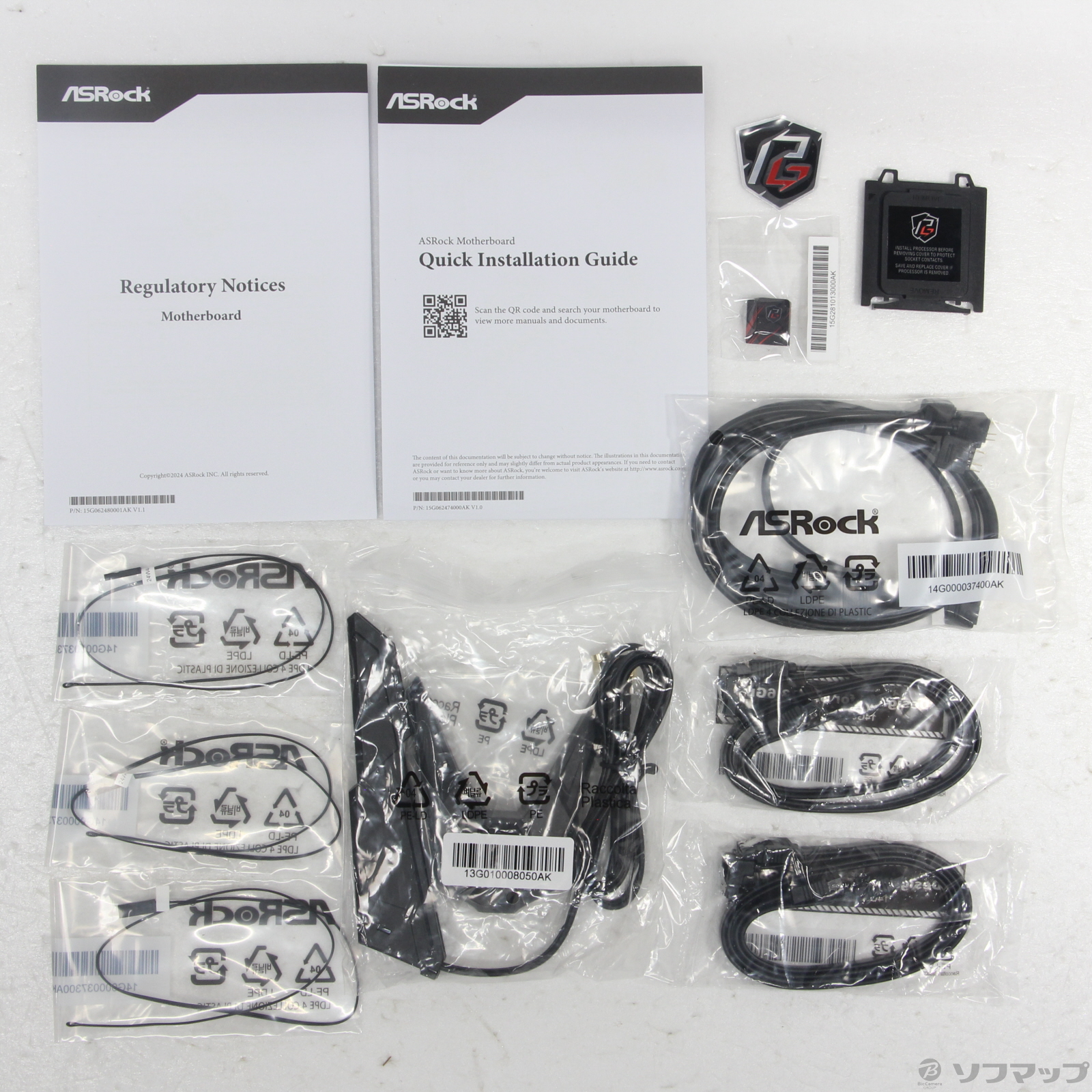 中古商品ランクについて 付属品・商品状態について 〔付属品〕Quick Installation Guide、CPUソケットカバー、ASRock WiFi2.4/5/6GHz アンテナ、ARGB スプリッタケーブル、サーミスターケーブル×3、SATAフラットケーブル×4