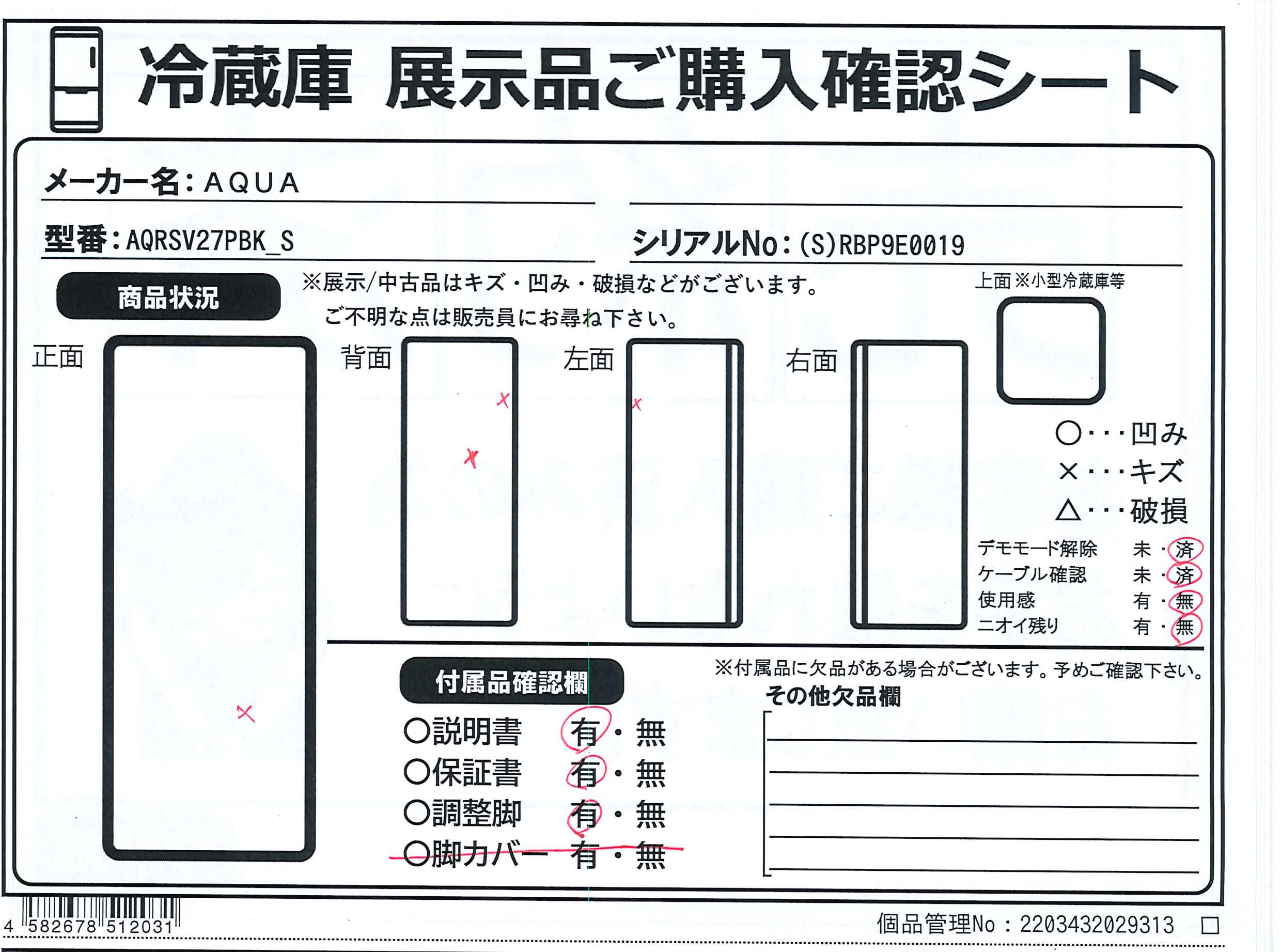 ▼同型番の新品商品はこちら![]() AQUA 冷蔵庫 ブライトシルバー AQR-SV27PBK(S) [幅60cm /272L /3ドア /右開きタイプ /2023年] 【基本設置料金セット】 ¥104,800(税込) 10,480ポイントサービス 在庫限り |