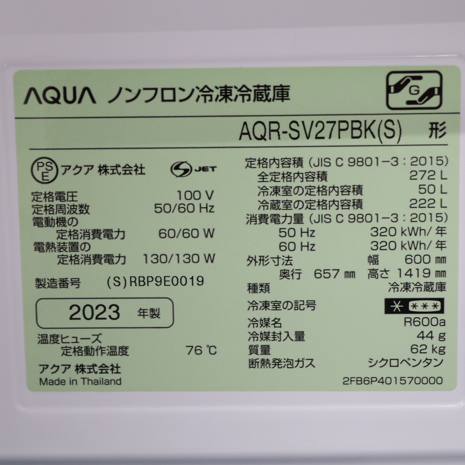 〔展示品〕 冷蔵庫 ブライトシルバー AQR-SV27PBK(S) [幅60cm /272L /3ドア /右開きタイプ /2023年]