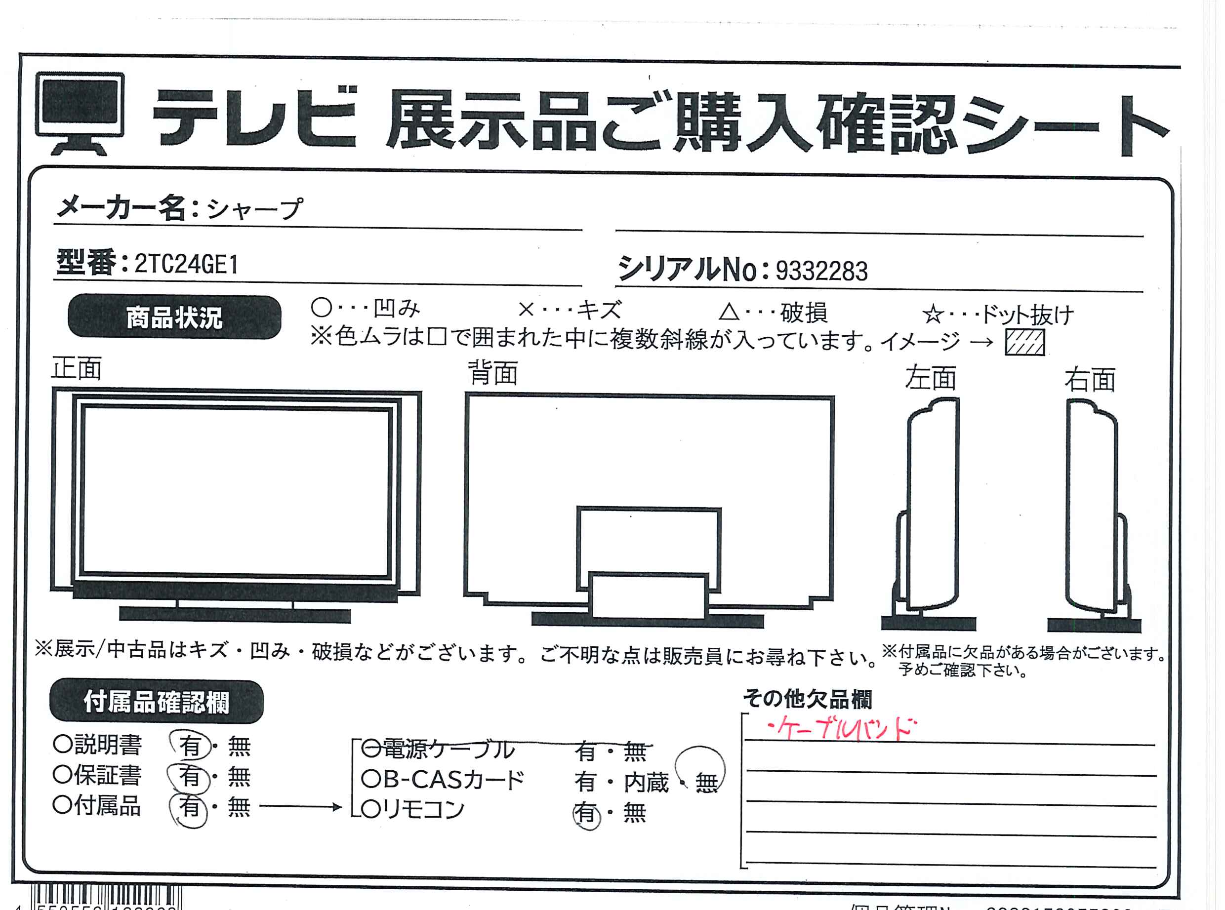 商品名 〔展示品〕 液晶テレビ AQUOS 2T-C24GE1 [24V型 /ハイビジョン]