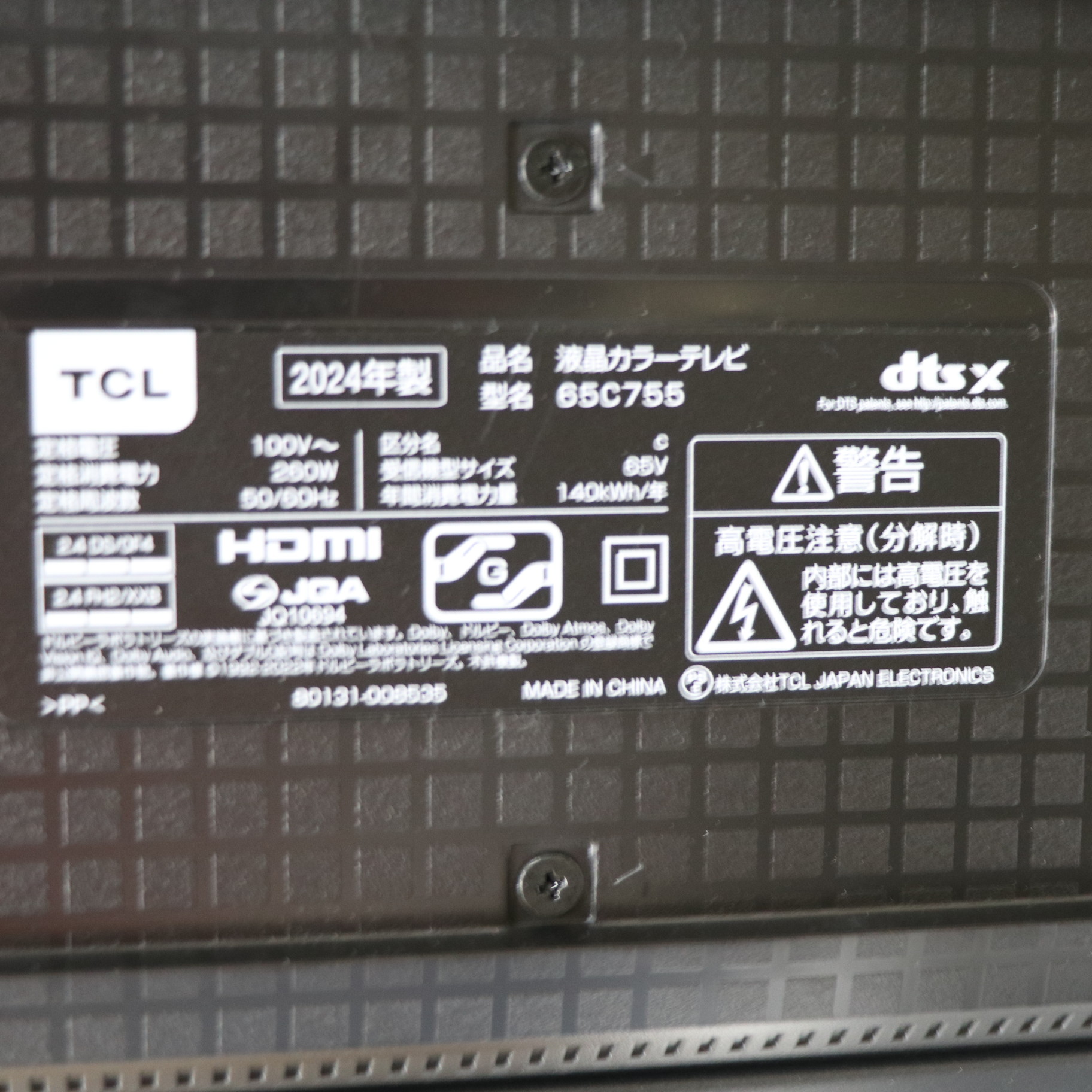 〔展示品〕 MiniLEDテレビ 65C755 [65V型 /Bluetooth対応 /4K対応 /BS・CS 4Kチューナー内蔵 /YouTube対応]