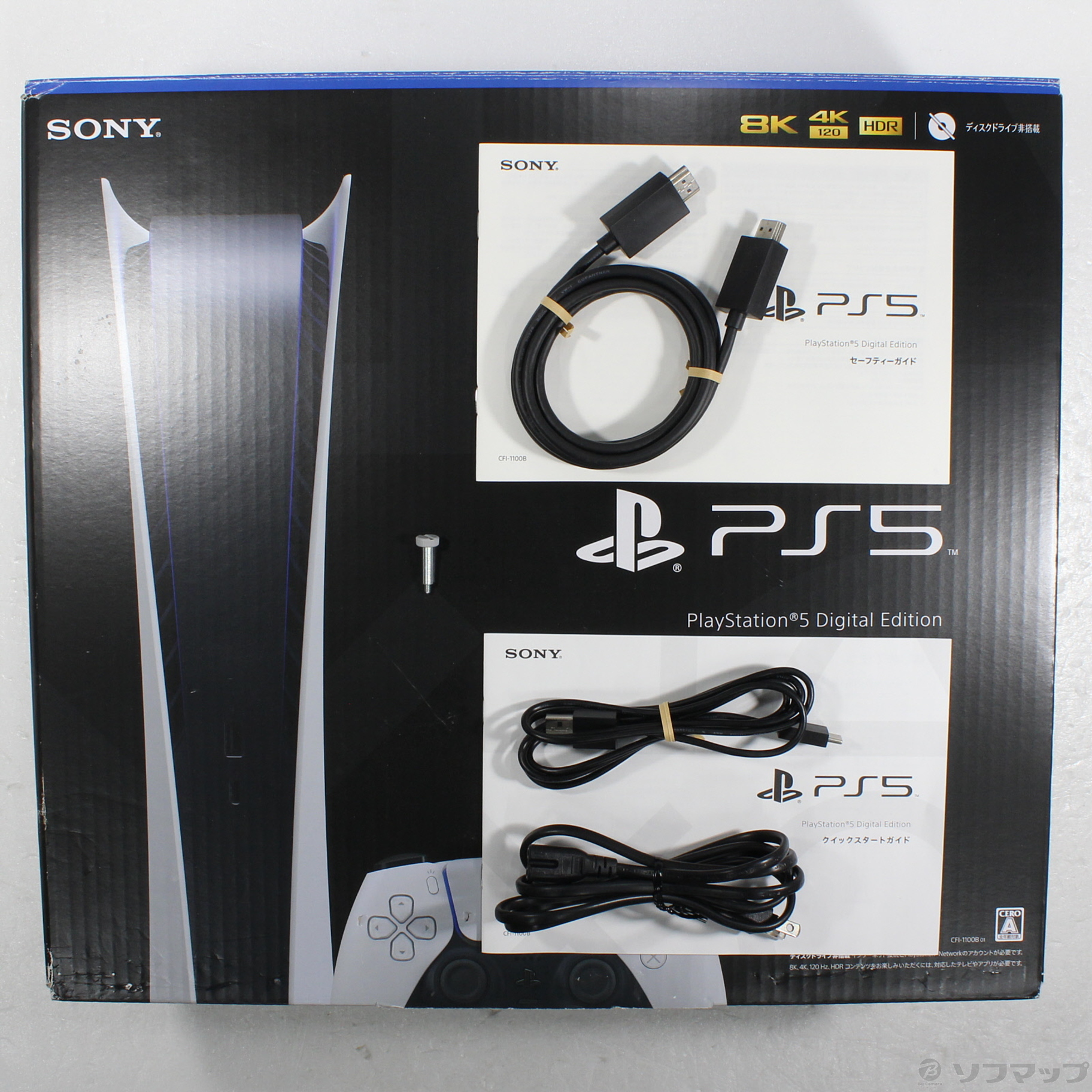 中古商品ランクについて 付属品・商品状態について 〔付属品〕外箱/内箱、クイックスタートガイド、セーフティガイド、DualSense ワイヤレスコントローラー、ベース、ベース取付用ネジ、本体底面ネジ穴キャップ、ACケーブル、HDMIケーブル、USBケーブル