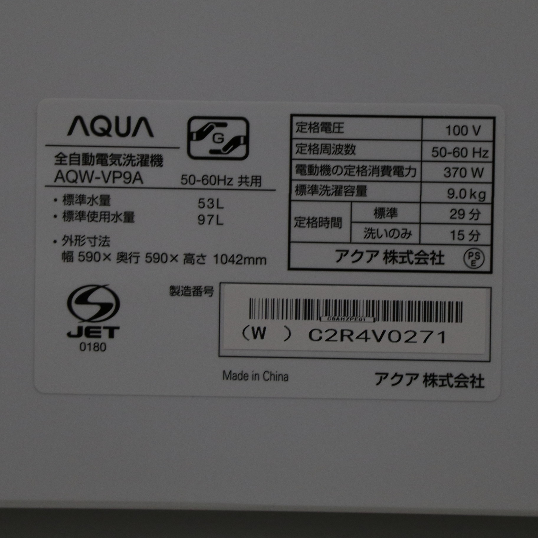 〔展示品〕 全自動洗濯機 ホワイト AQW-VP9A(W) [洗濯9.0kg /簡易乾燥(送風機能) /上開き]