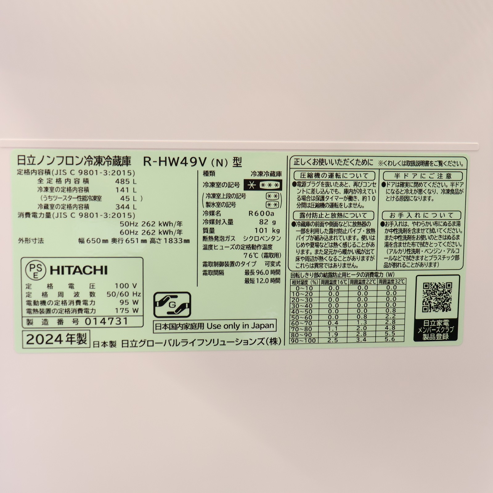 ▼同型番の新品商品はこちら![]() HITACHI(日立) 冷蔵庫 HWタイプ ライトゴールド R-HW49V-N [幅65cm /485L /6ドア /観音開きタイプ /2024年] ¥248,000(税込) 24,800ポイントサービス 在庫限り |