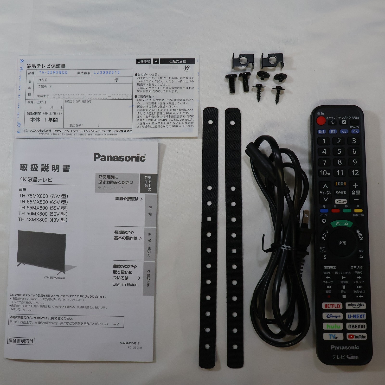 〔展示品〕 液晶テレビ VIERA(ビエラ) TH-55MX800 [55V型 /4K対応 /BS・CS 4Kチューナー内蔵 /YouTube対応]
