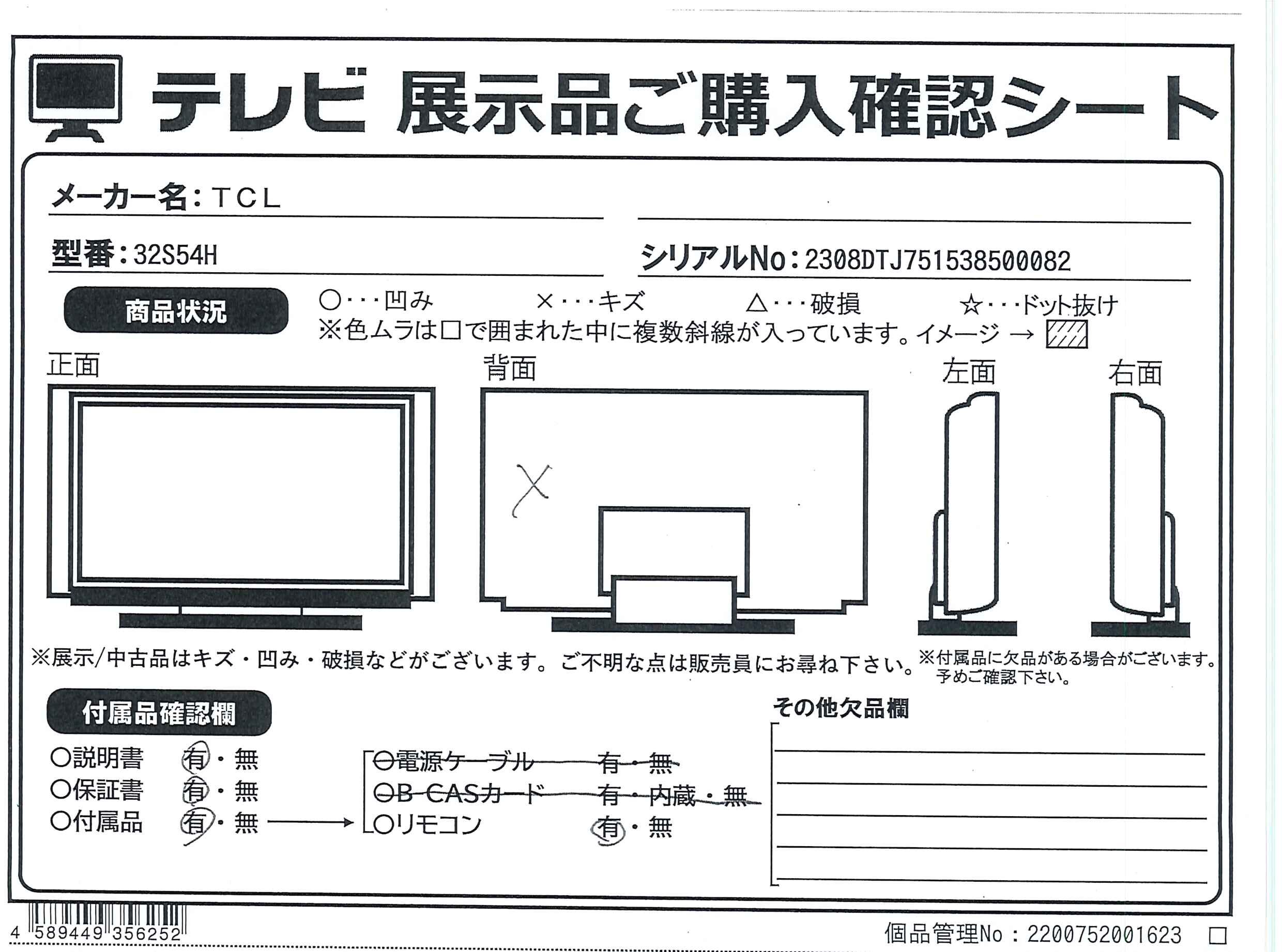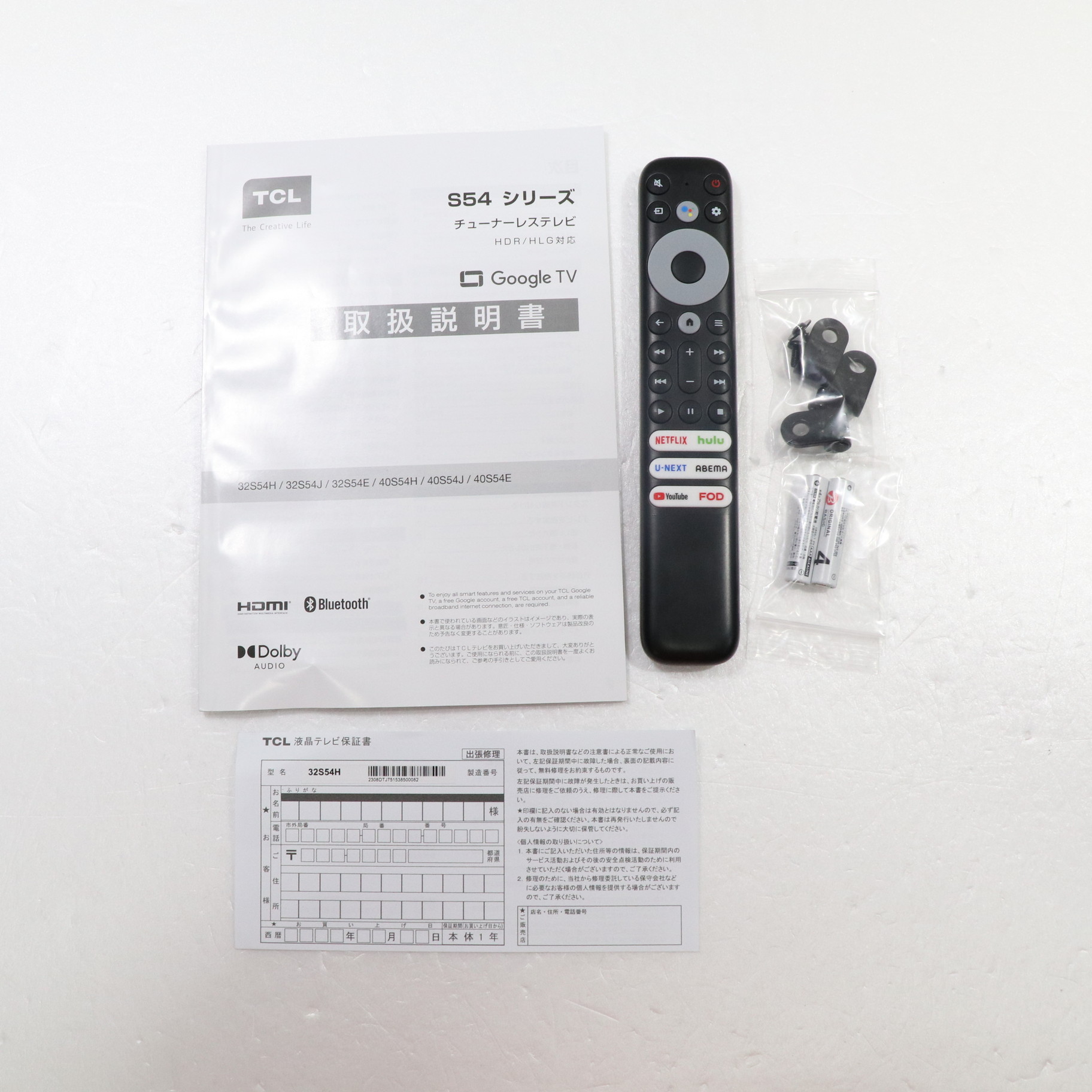 中古商品ランクについて 付属品・商品状態について 〔付属品〕取扱説明書、かんたんガイド、標準リモコン、単四型乾電池、スタンド×2、スタンド用ネジ×4、転倒落下防止用部品一式