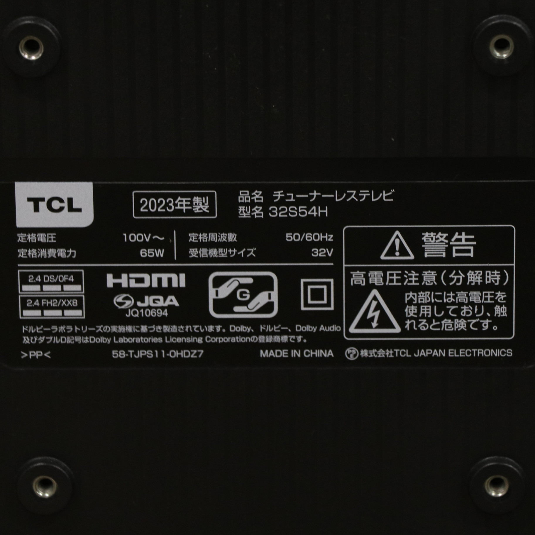 〔展示品〕 チューナーレステレビ S54Hシリーズ 32S54H [32V型 /Bluetooth対応 /フルハイビジョン /チューナーレス /YouTube対応]