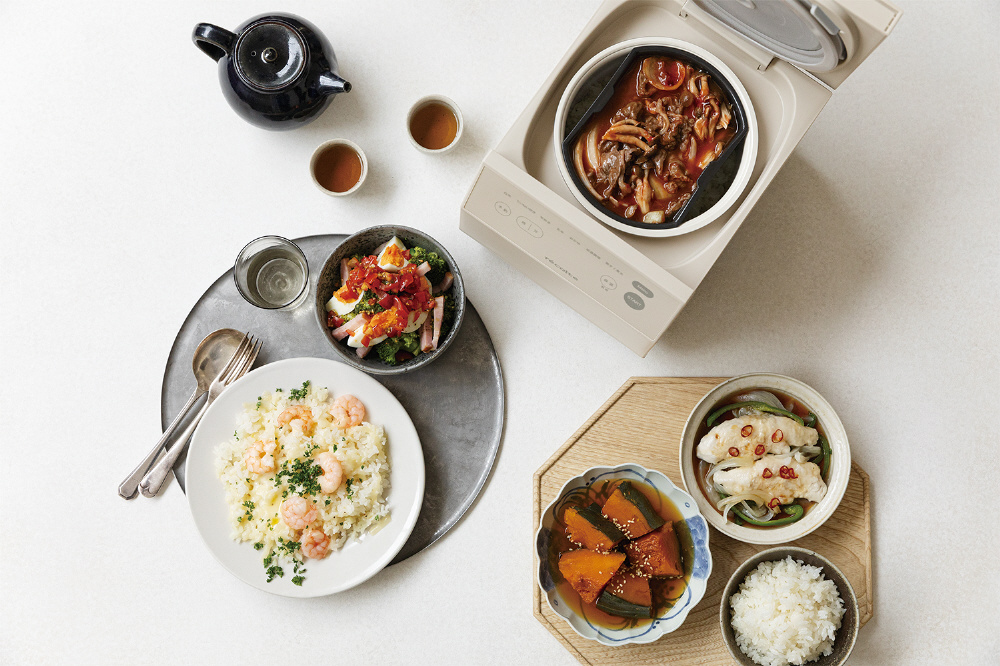 ごはんを炊く際に出る蒸気を利用して、おかずも同時に作れる炊飯器。