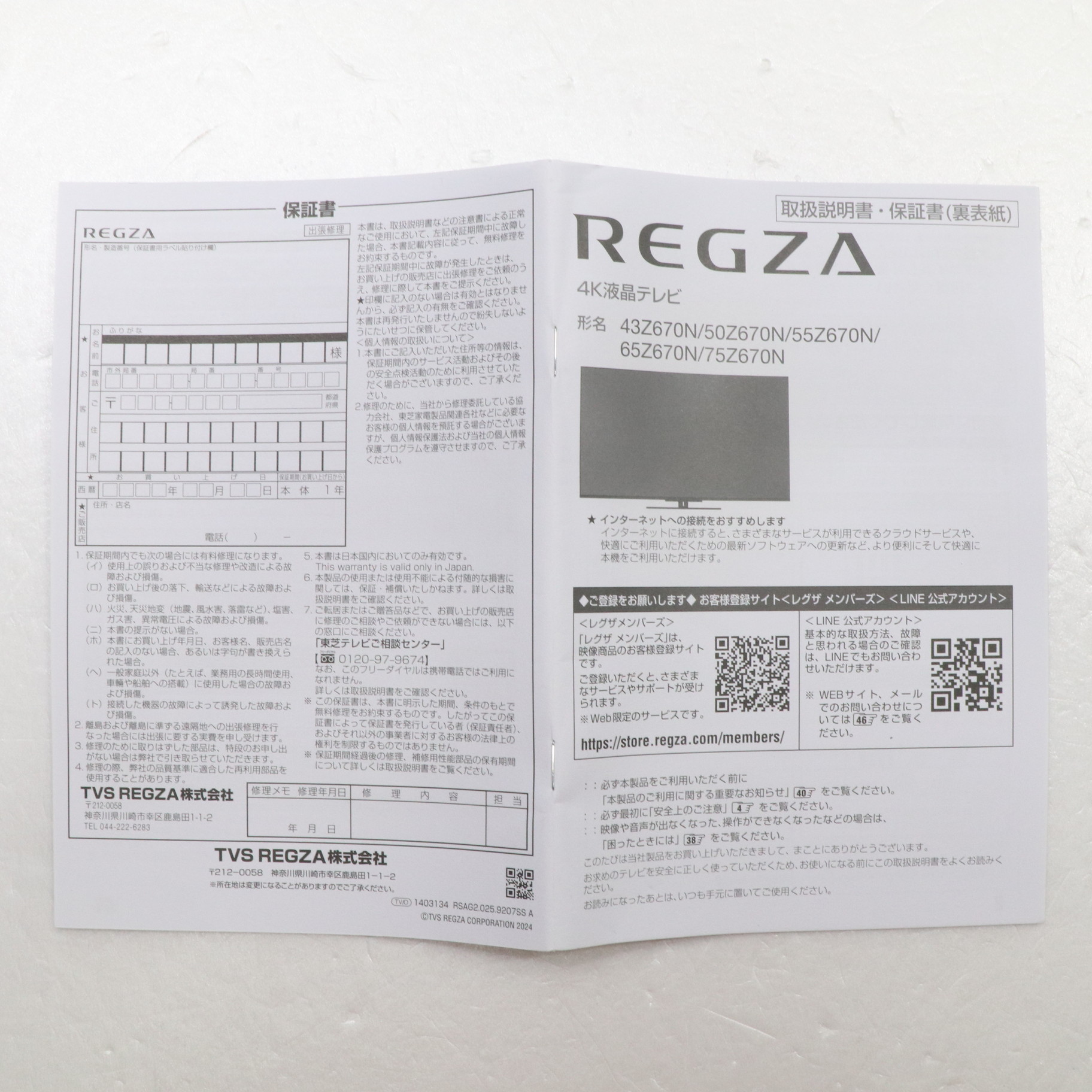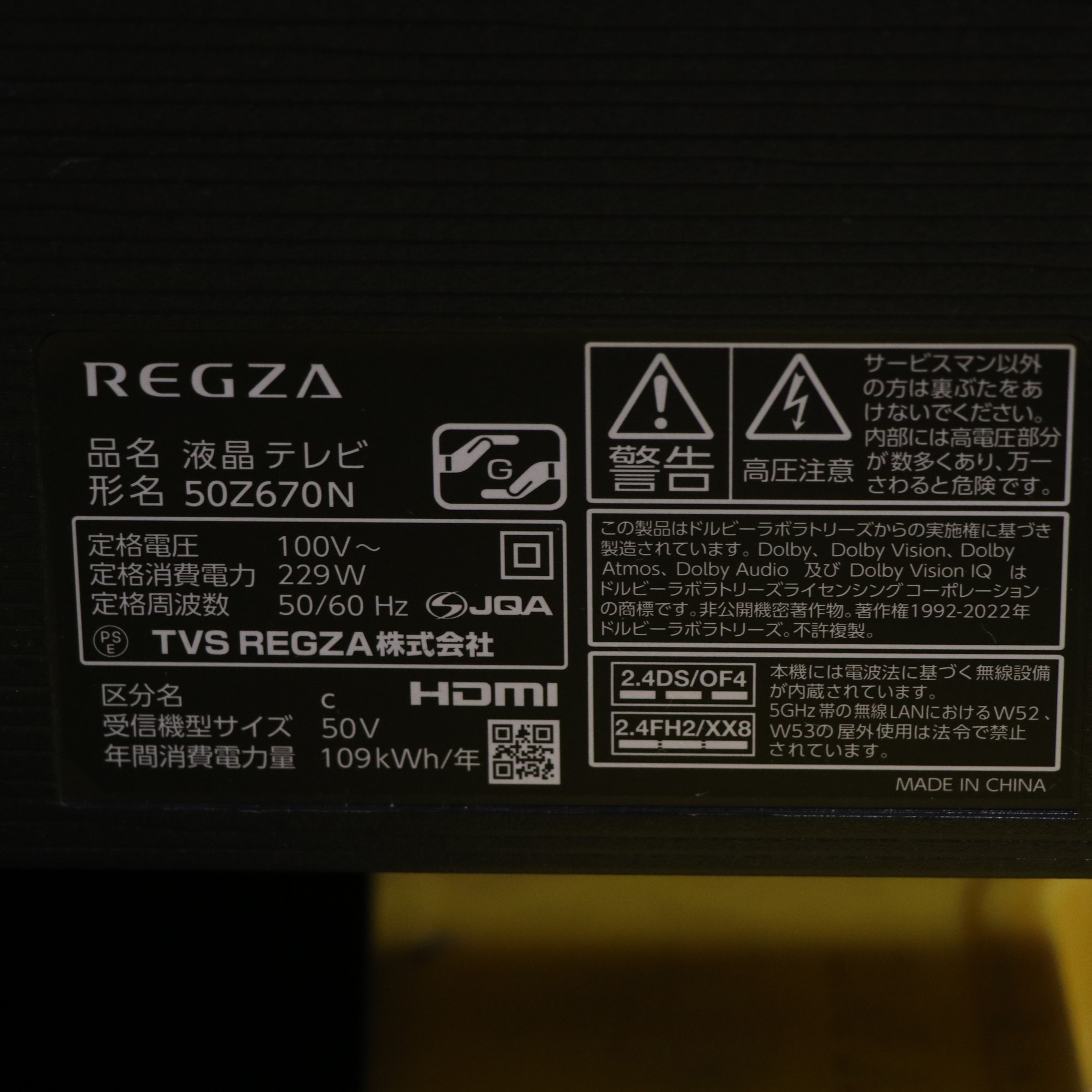 〔展示品〕 液晶テレビ REGZA(レグザ) 50Z670N [50V型 /Bluetooth対応 /4K対応 /BS・CS 4Kチューナー内蔵 /YouTube対応]
