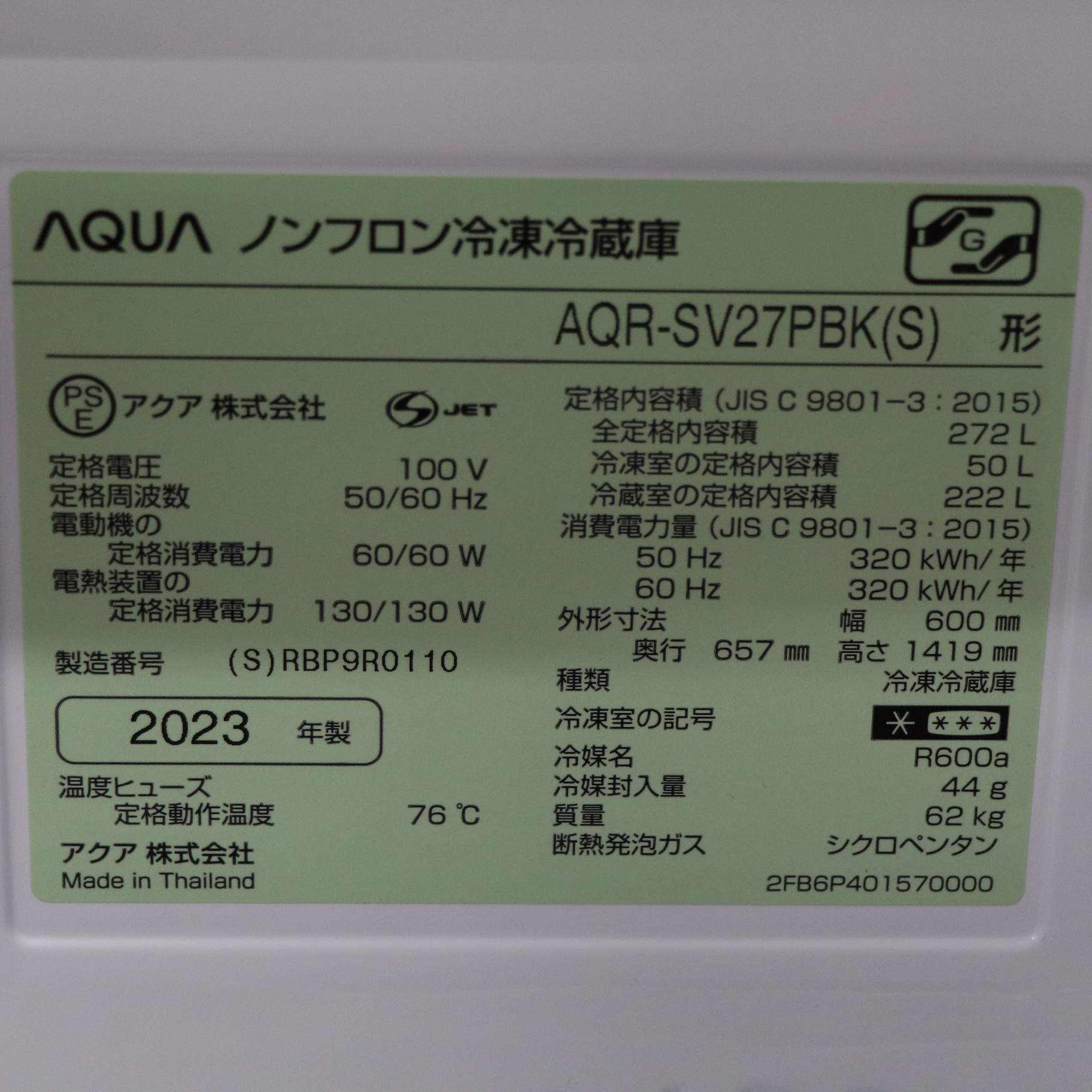 〔展示品〕 冷蔵庫 ブライトシルバー AQR-SV27PBK(S) [幅60cm /272L /3ドア /右開きタイプ /2023年]