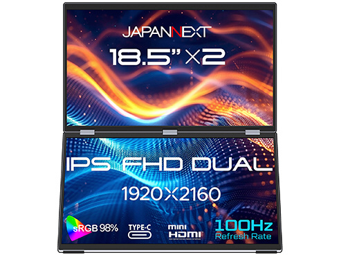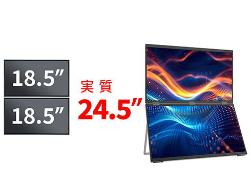 18.5インチの大画面IPSパネルを2枚搭載し、フルHD(1920×1080)解像度に対応したデュアルモバイルディスプレイです。