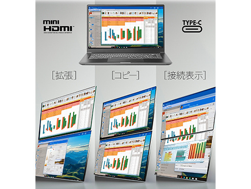 *1. 画面拡張機能をご利用いただくにはUSB-C接続が必要です。HDMI接続の場合はモバイルモニター側の2画面が同じ表示内容となります。