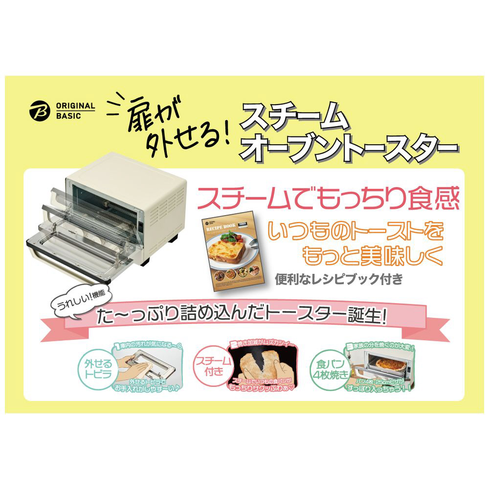 未使用品 扉が外せるスチームオーブントースター OB-T133BK-WH 〔箱破損品〕