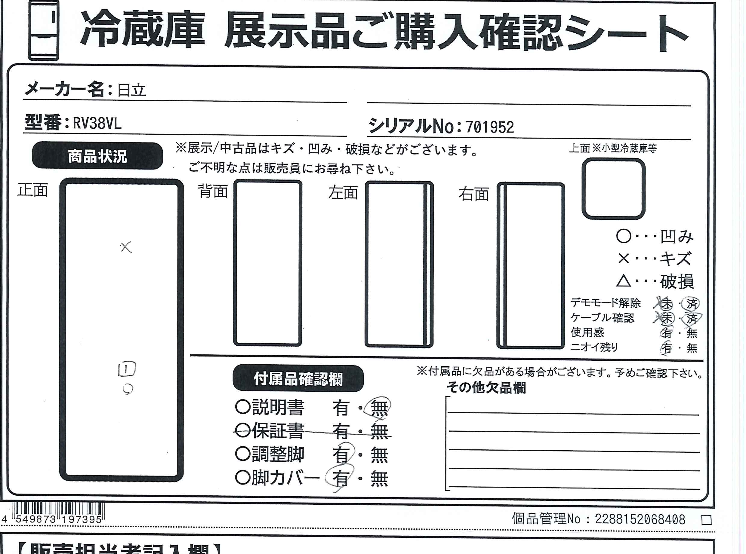 中古商品ランクについて 付属品・商品状態について 〔付属品〕調節脚、脚カバー、給水タンク、小物ケース、卵スタンド、製氷スコップ、蒸発皿