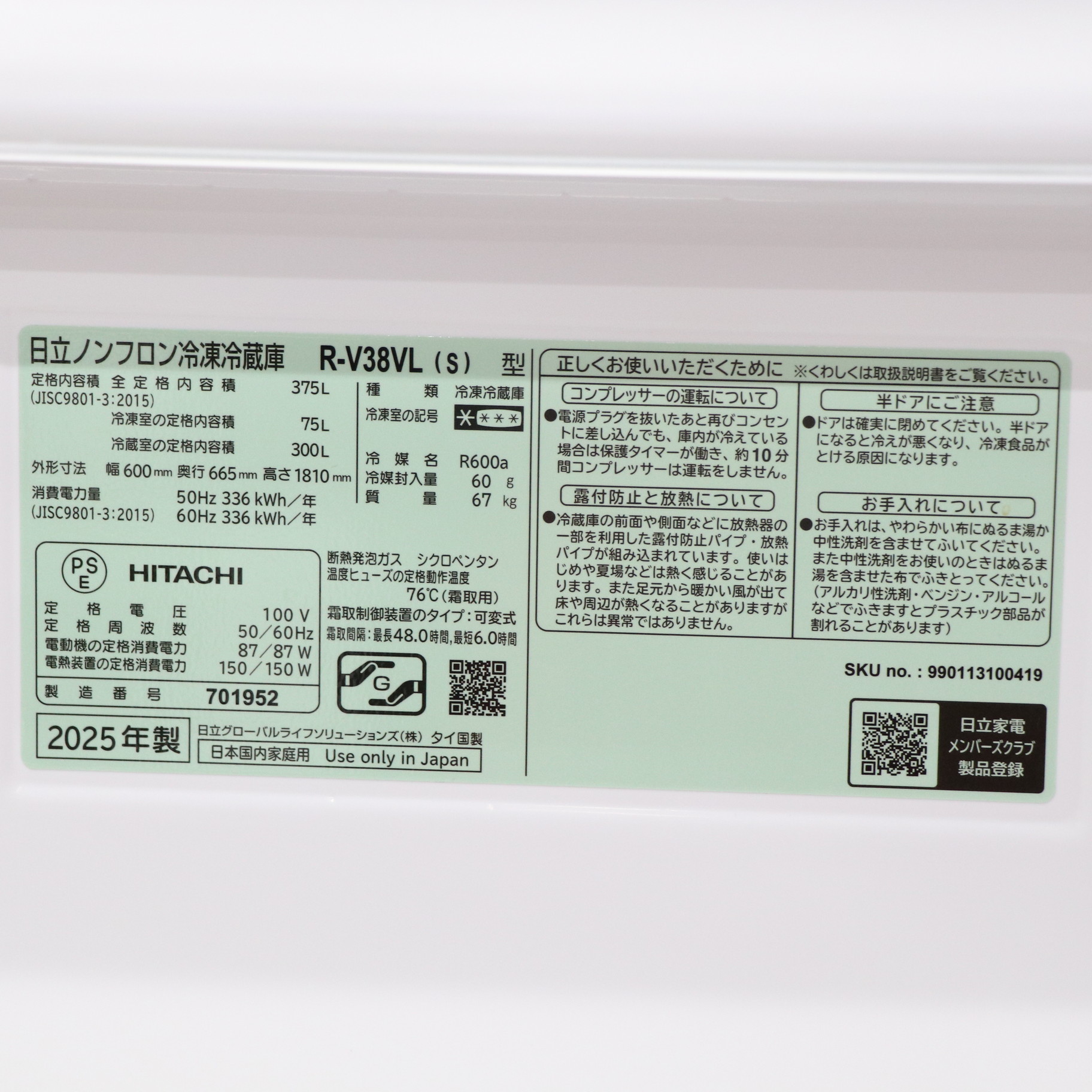 〔中古品〕 冷蔵庫 Vタイプ グラファイトシルバー R-V38VL-S [幅60cm /375L /3ドア /左開きタイプ /2024年]