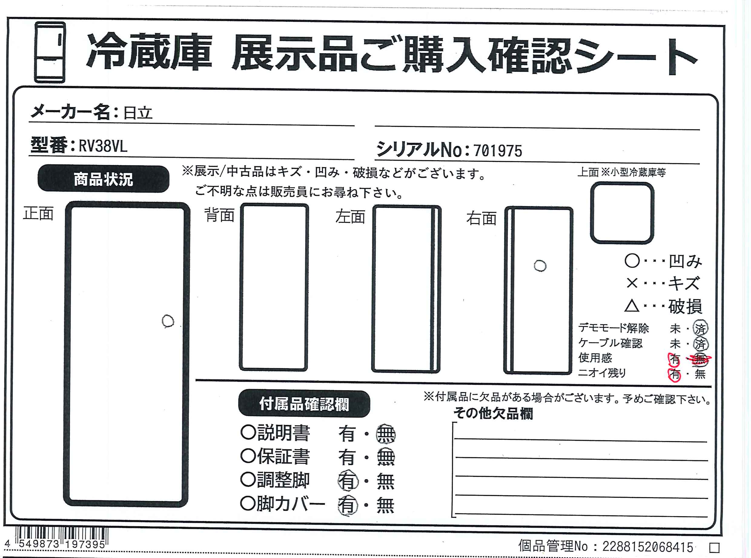 中古商品ランクについて 付属品・商品状態について 〔付属品〕調節脚、脚カバー、給水タンク、小物ケース、卵スタンド、製氷スコップ、蒸発皿