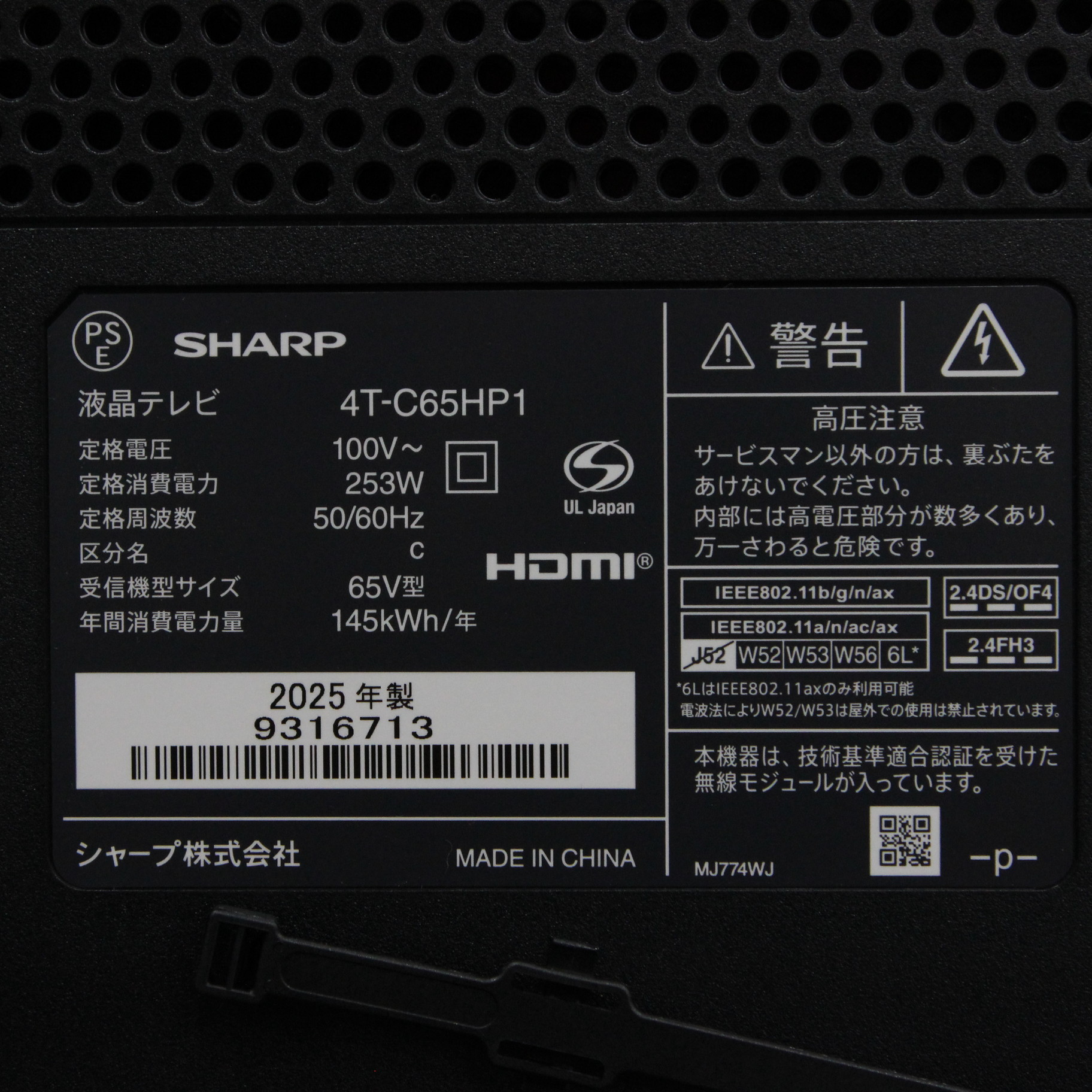 〔展示品〕 液晶テレビ AQUOS 4T-C65HP1 [65V型 /Bluetooth対応 /4K対応 /BS・CS 4Kチューナー内蔵 /YouTube対応]