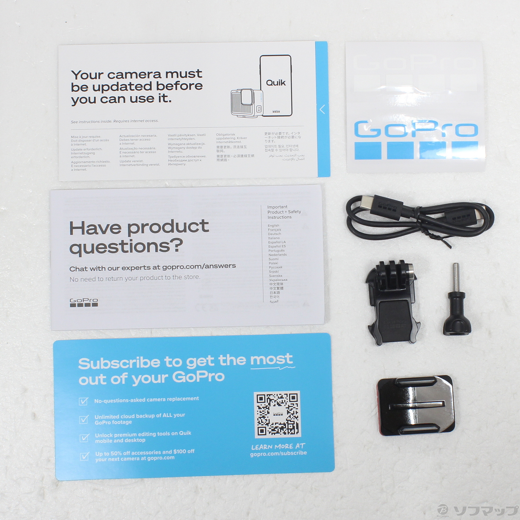 中古商品ランクについて 付属品・商品状態について 〔付属品〕クイックスタートガイド、安全と製品に関する重要な情報、ステッカー、粘着性ベースマウント(曲面)、マウント用バックル、サムスクリュー、USB-Cケーブル