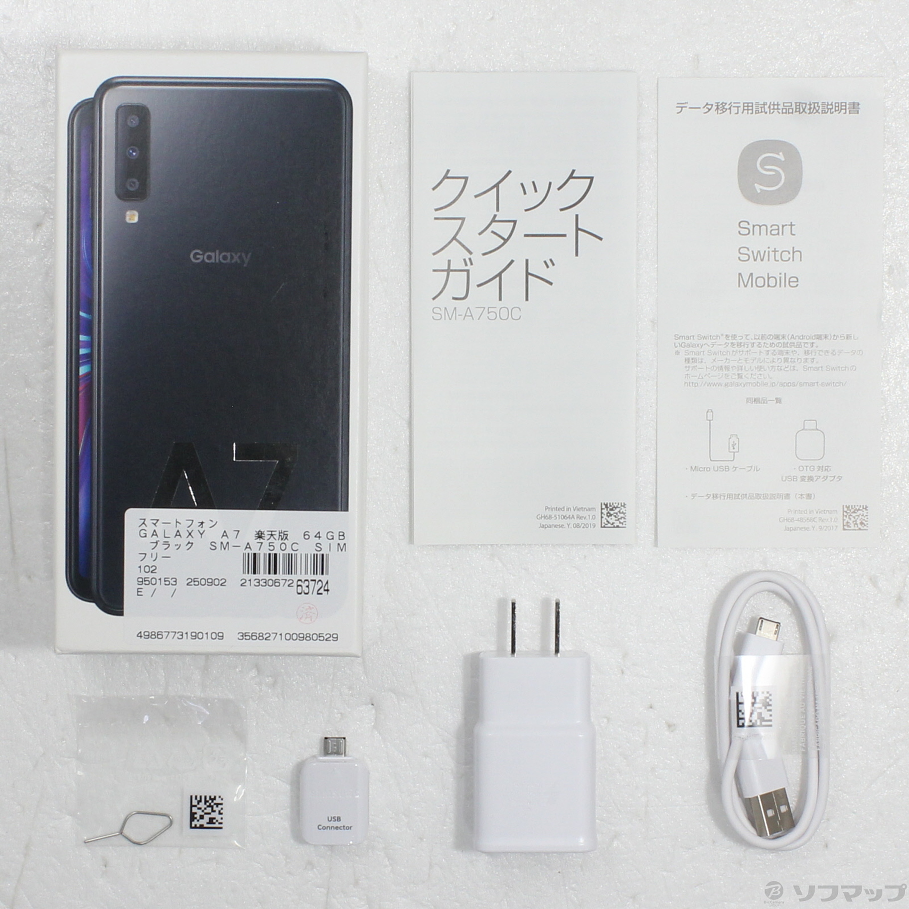 〔ジャンク品〕 GALAXY A7 64GB ブラック SM-A750C 楽天 SIMフリー [6インチ有機EL/Exynos 7885]
