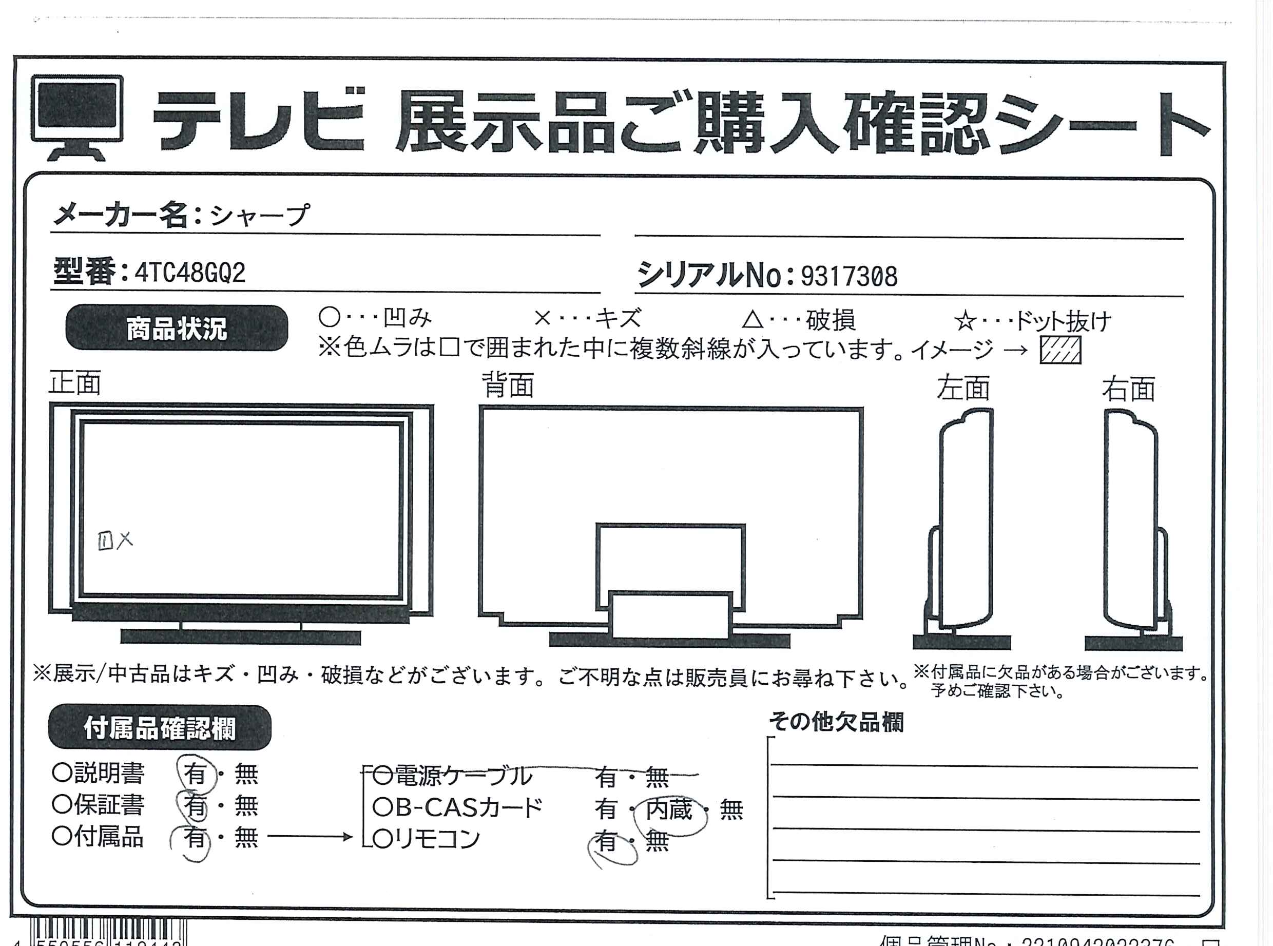 ▼同型番の新品商品はこちら![]() SHARP(シャープ) 有機ELテレビ AQUOS ブラック 4T-C48GQ2 [48V型 /Bluetooth対応 /4K対応 /BS・CS 4Kチューナー内蔵 /YouTube対応] ¥195,794(税込) 0ポイントサービス 在庫限り |